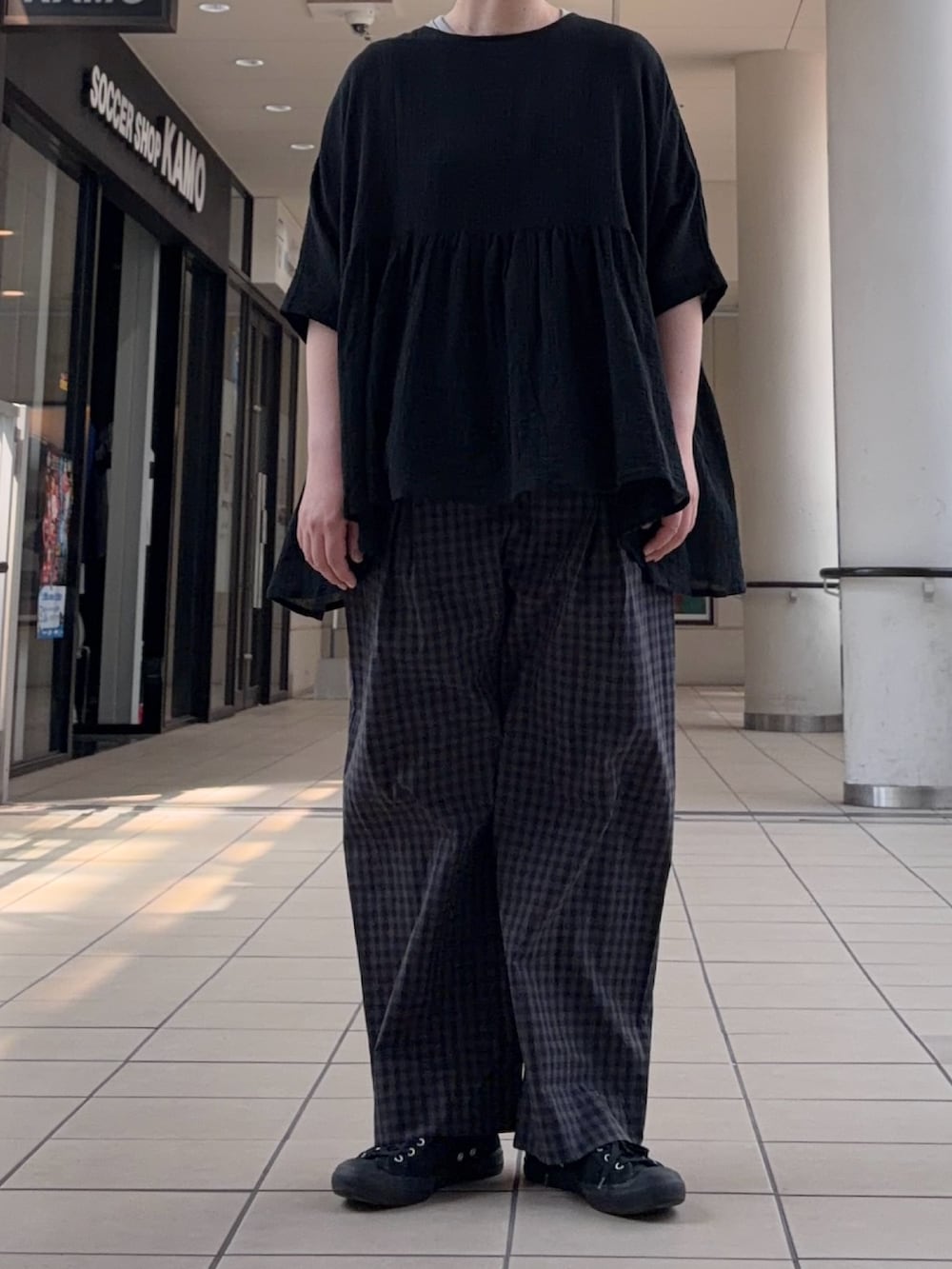 トーンが抑えられたギンガムチェックは、シンプルなトップス合わせに存在感をもたらします◎