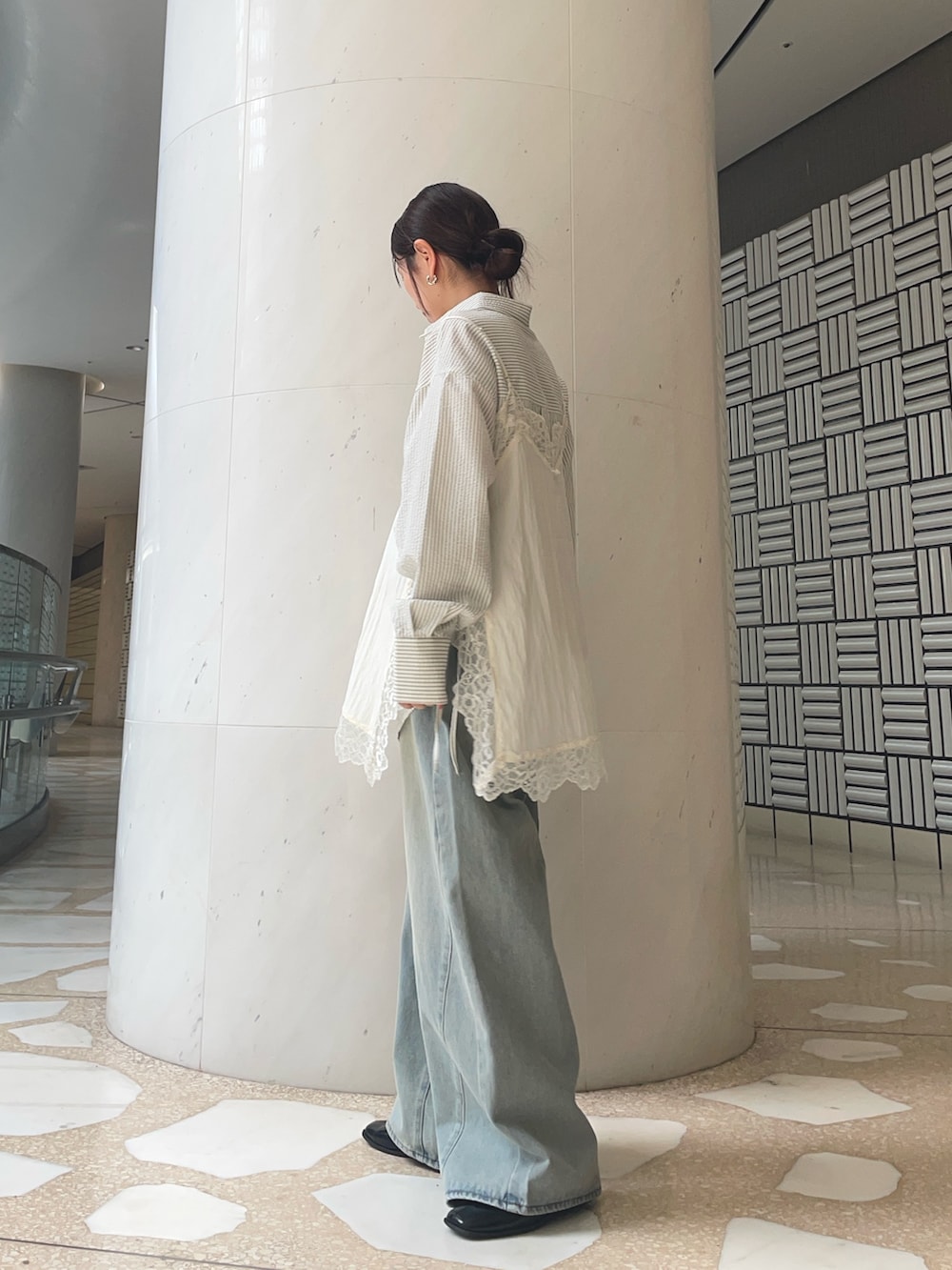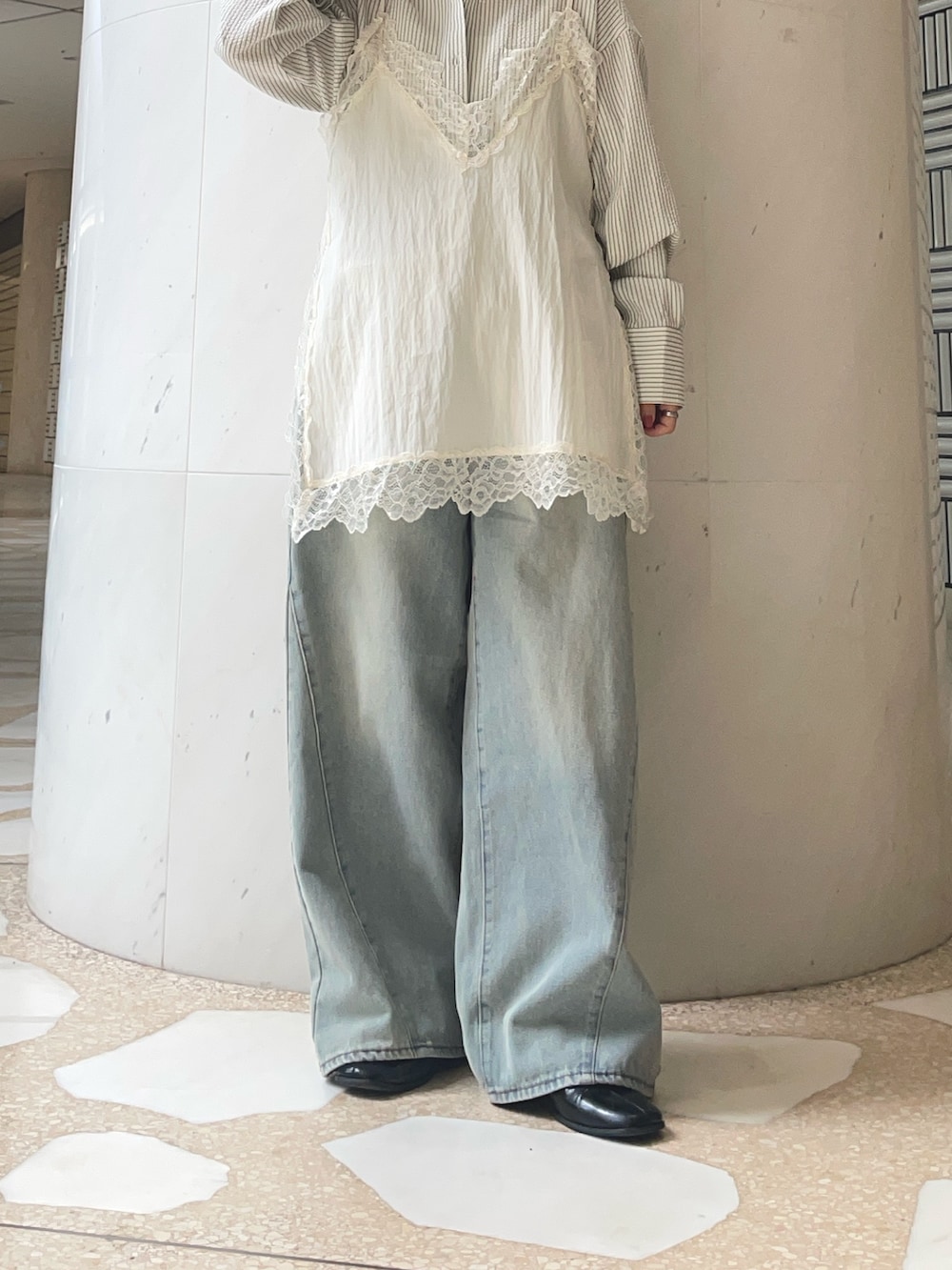 大人気のレースキャミをレイヤードしたリラックススタイルです🚿