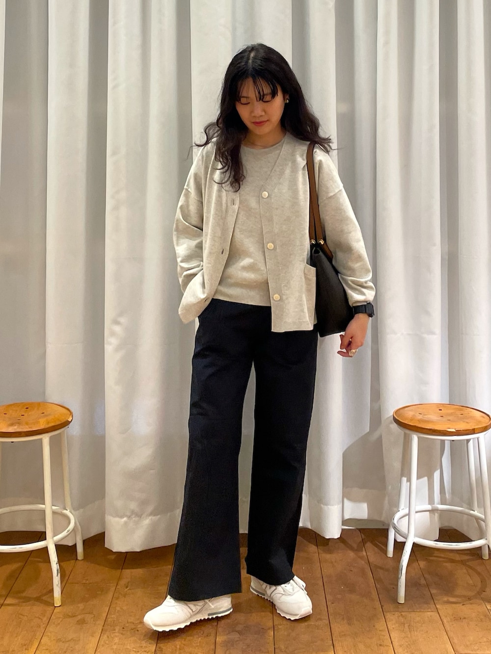 店頭でも大人気のウォッシャブルブライトプルオーバーとカーディガンをアンサブル風に着てみました✨