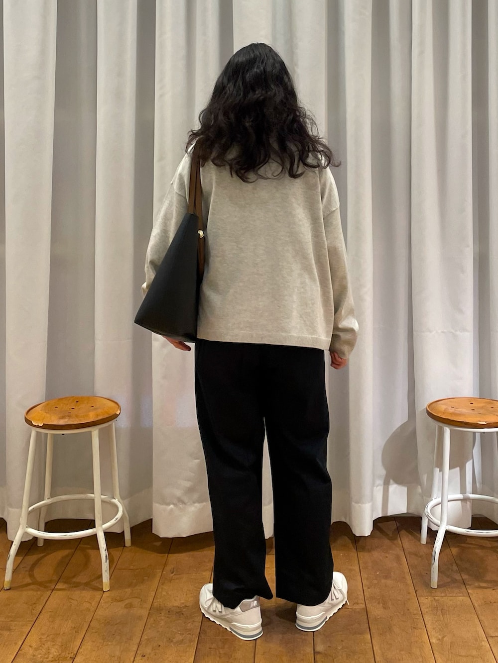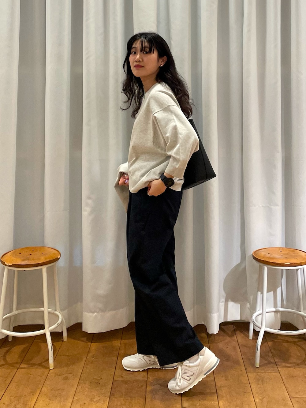 今回は、オフィスでも使えるようにパンツもキレイめで合わせています。