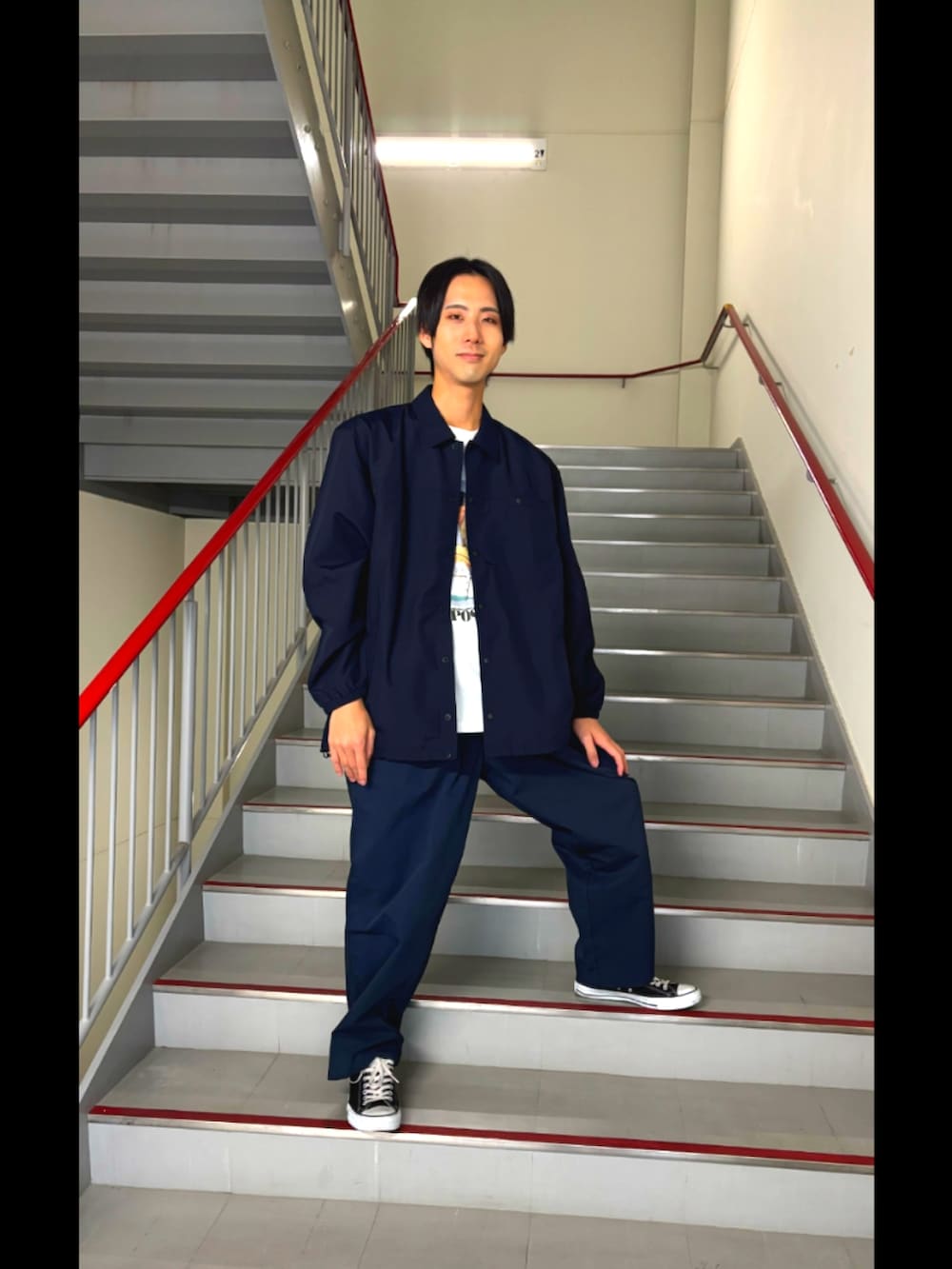 当店でも好調なMarmotのコーチジャケットを取り入れ、下はアーバンリサーチでは珍しいがっつり太いパンツを素材感や色味を