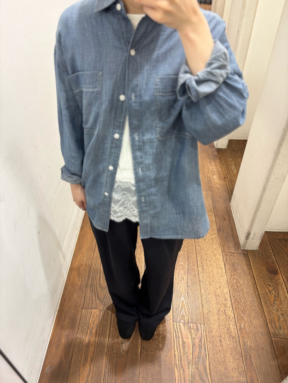 本日はシアーデニムシャツを使ってコーディネートを組んでみました✨