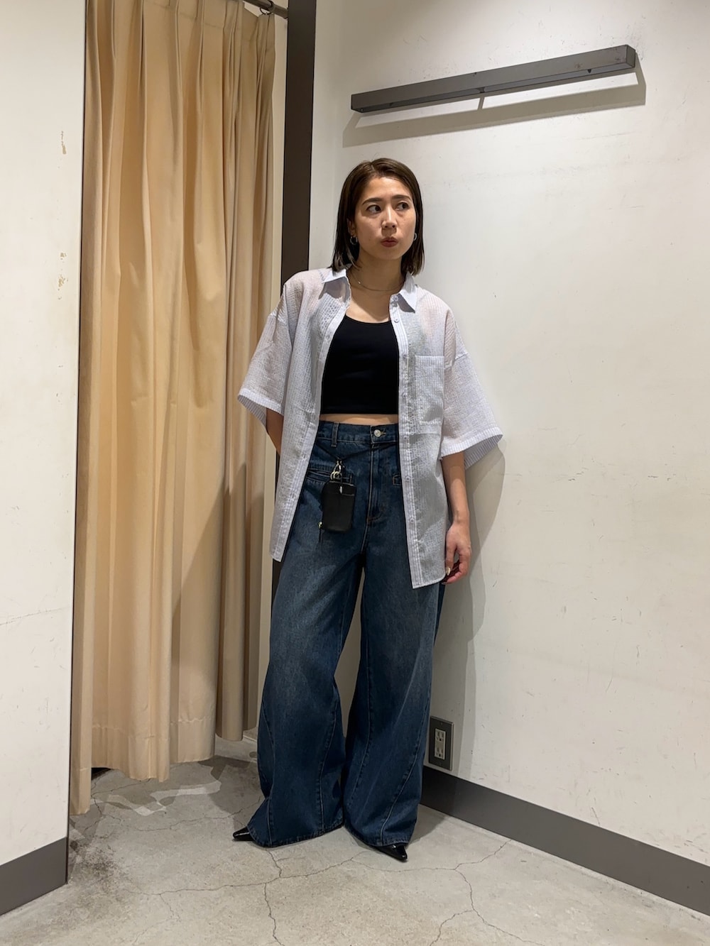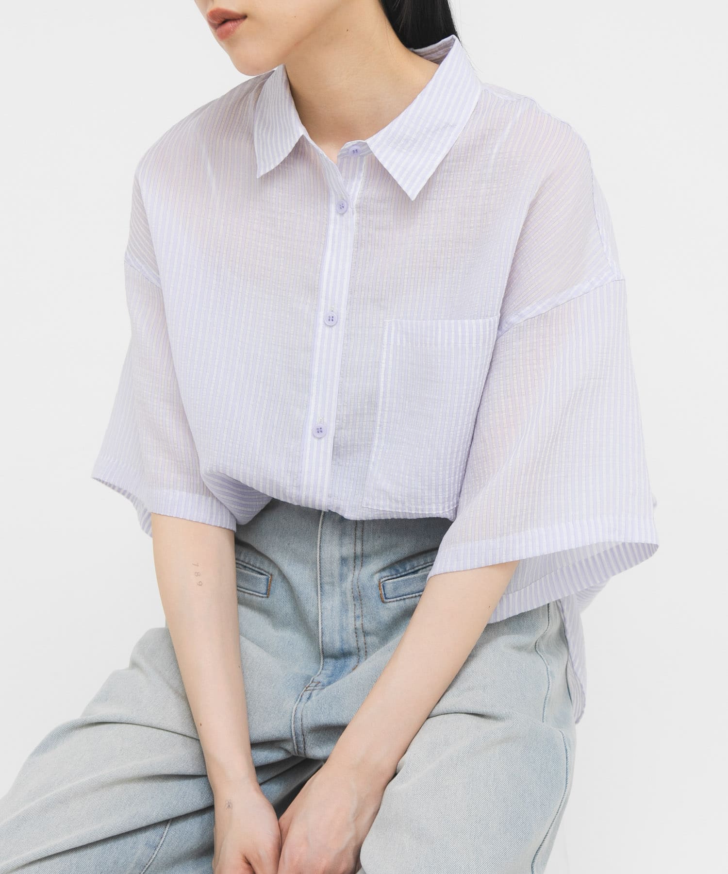 シアーストライプBIGシャツはボタンをあけて、羽織りできるのもおすすめです✨