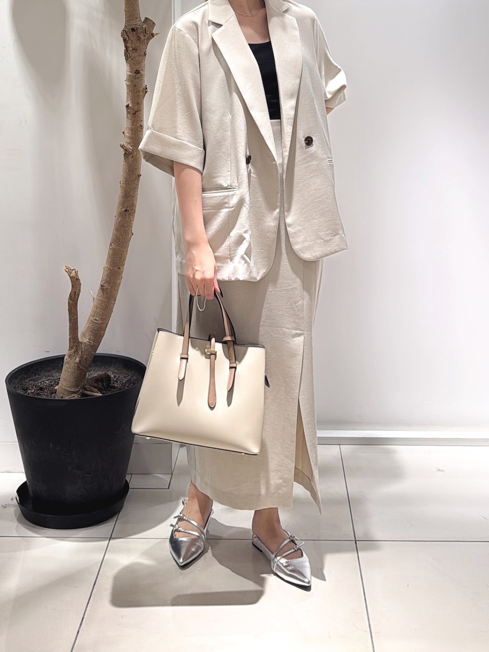 SENSE OF PLACE『一部WEB限定』『UR TECH DRYLUXE』リネンライクスリットタイトスカート- 着用カラー: