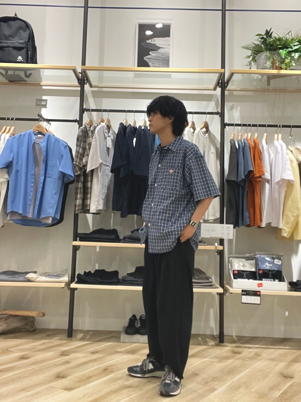 DANTONのチェックシャツにWide Dadのパンツを合わせてみました!夏はいかに楽に過ごせるかが肝だと思うので、機能性が良いものを一個入れるのはマストだと思います!