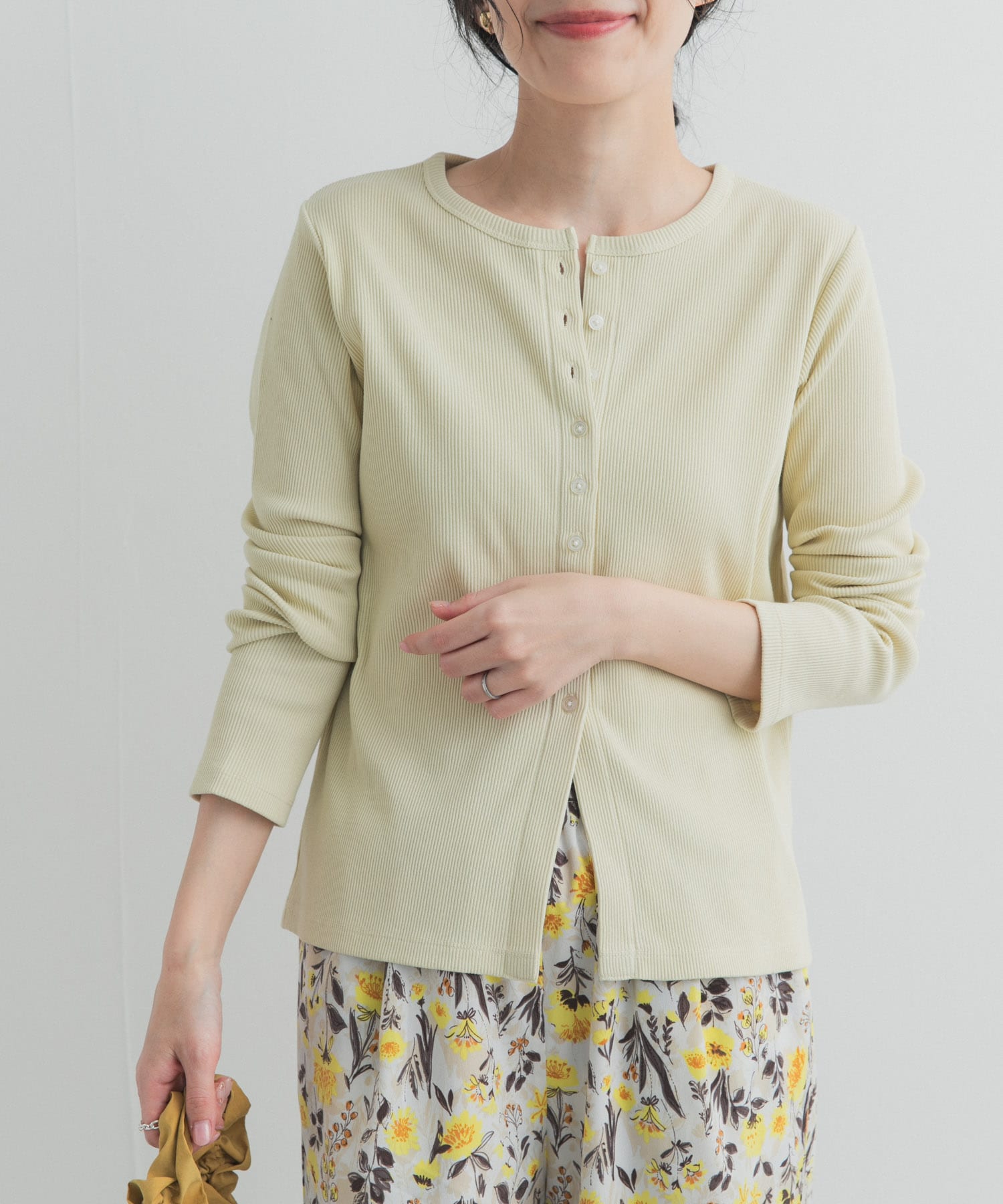 リブボタンカットカーディガン
