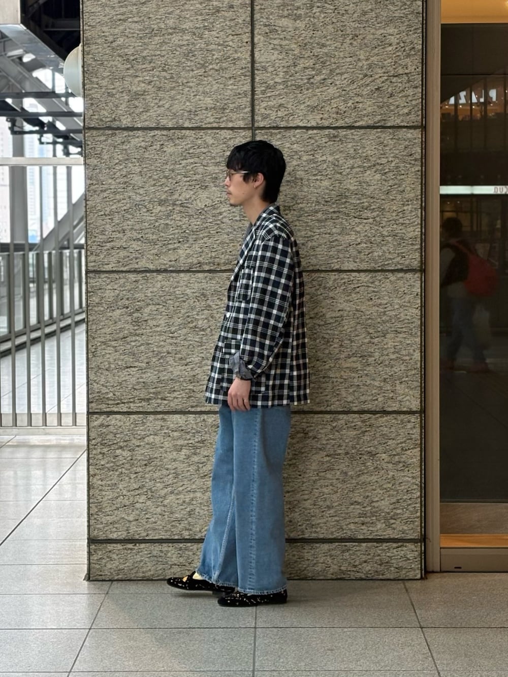 可能な限りデニムで合わせたコーデ。アイウェアもアメリカンオプティカルより。