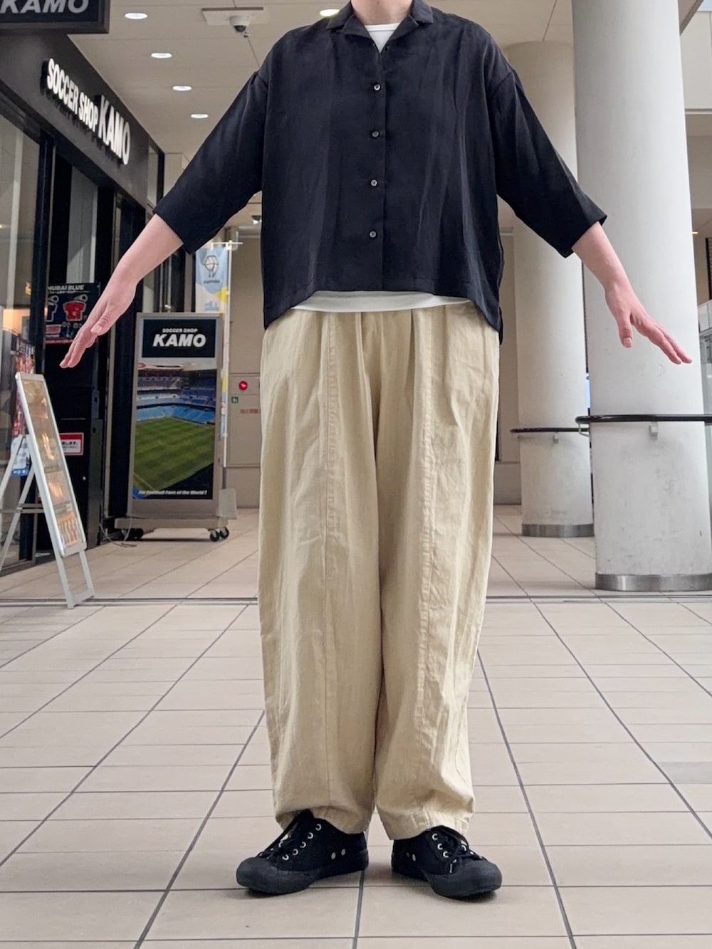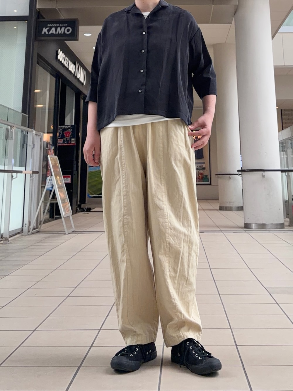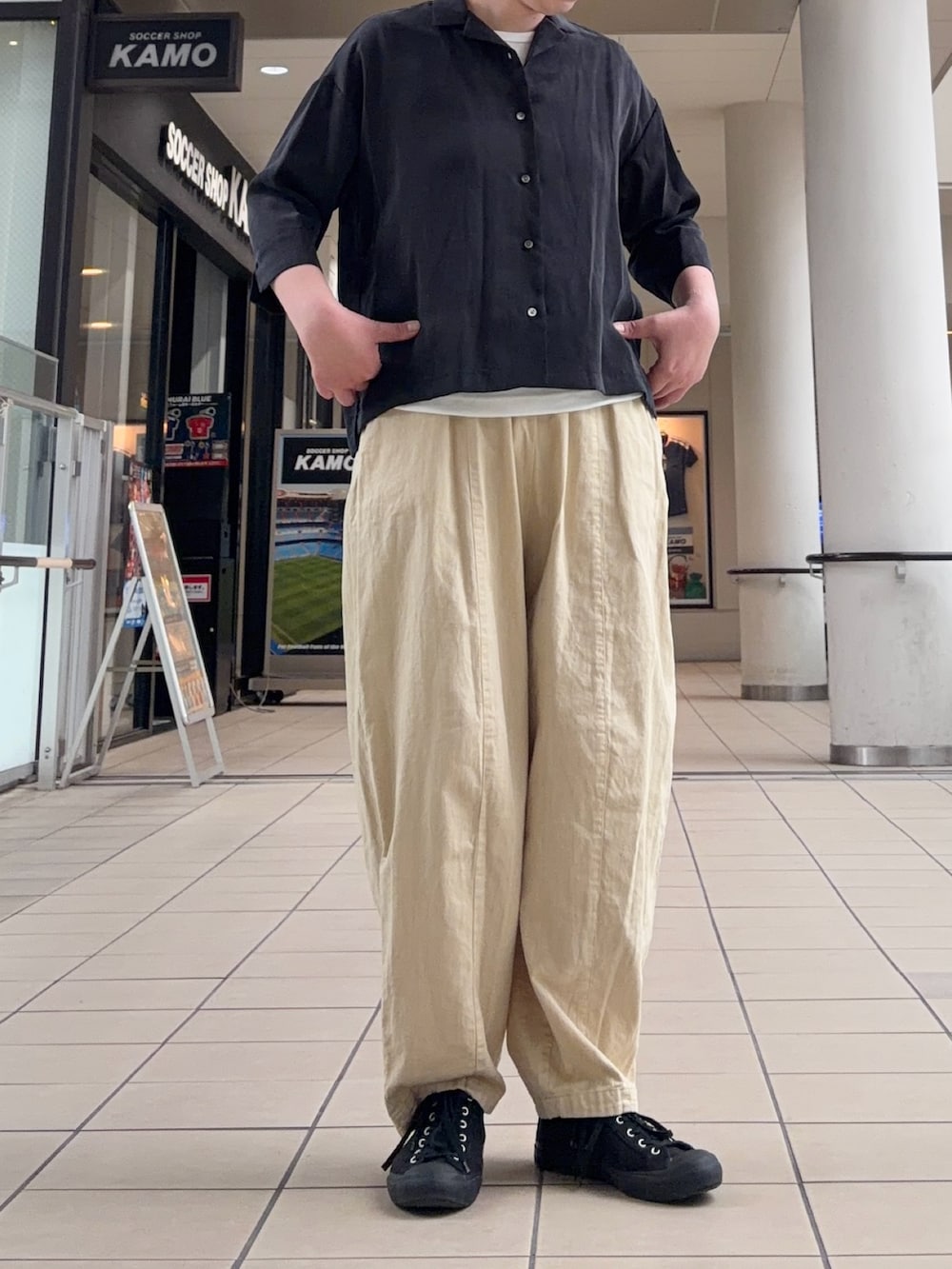 今回はイエローのボトムと合わせた春のお出かけスタイルです。まるみのあるボリュームがポイントのボトムです。ぜひお試しくださいませ🌷