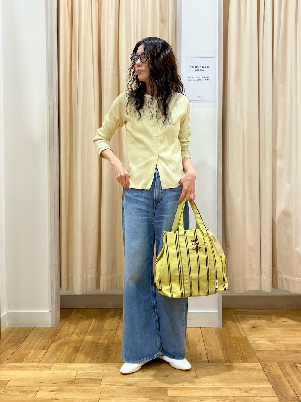 柔らかいイエローのカラーが春らしいリブカーディガン。伸びがよく着心地抜群です!
