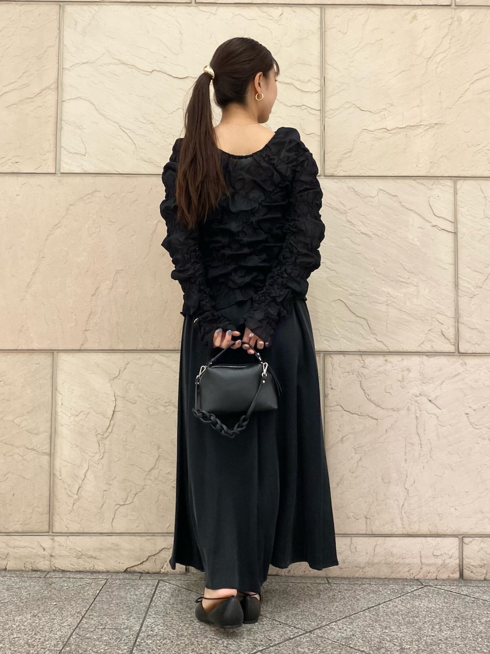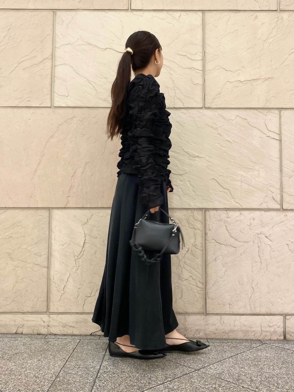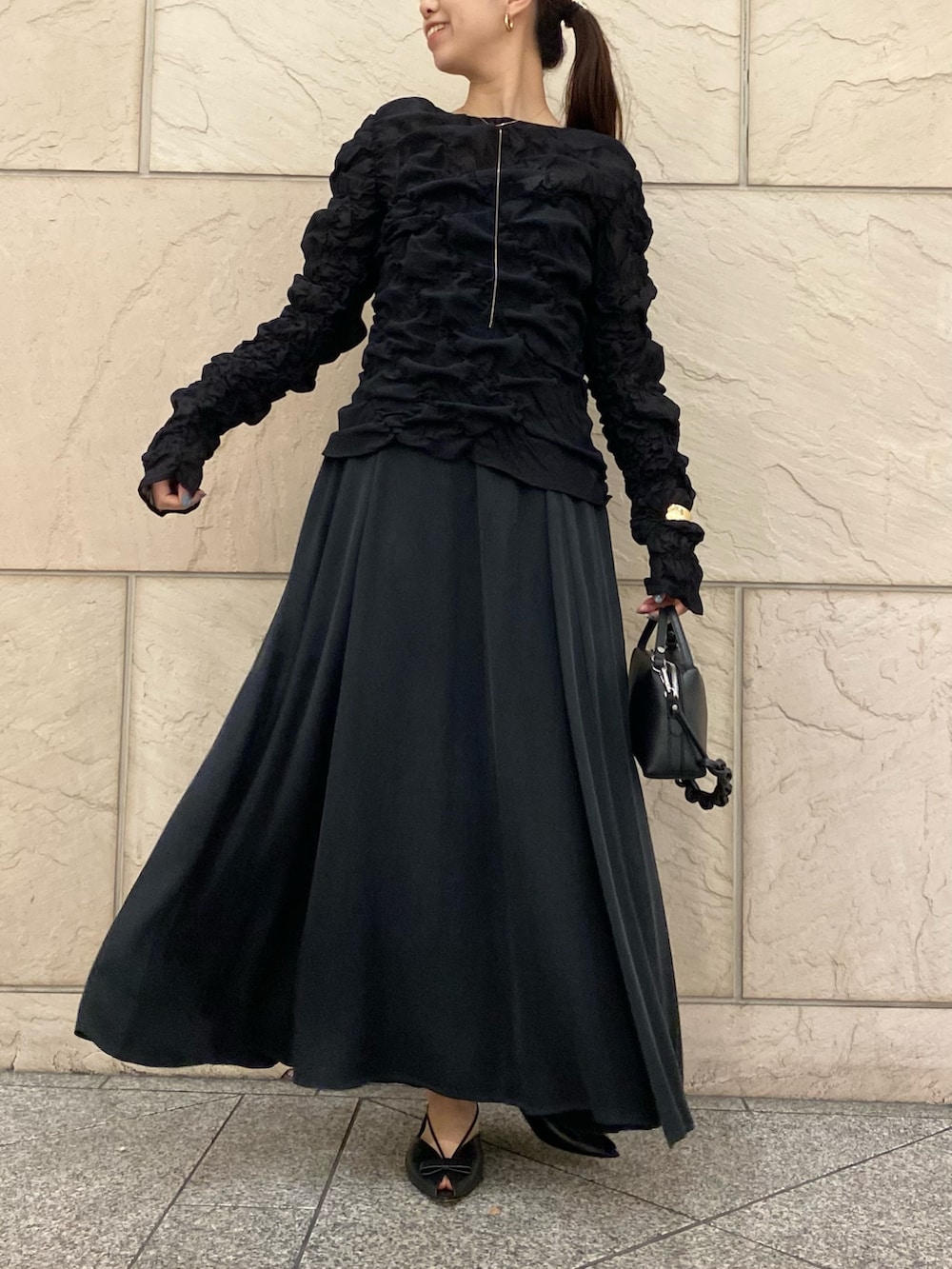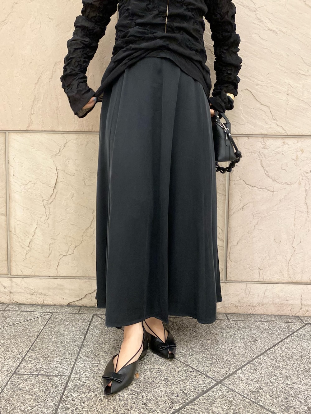 トップスとのコントラストもあり素敵。