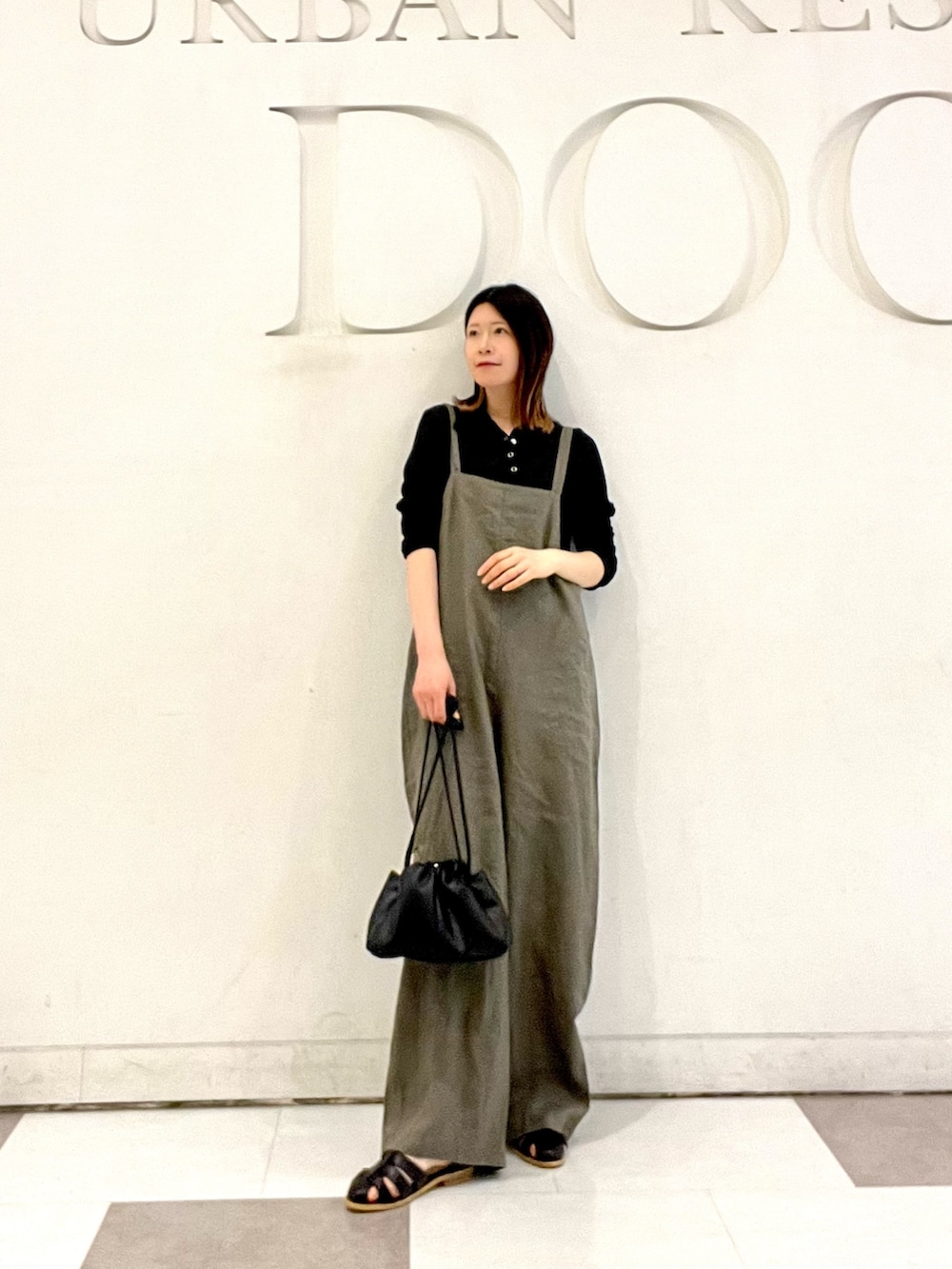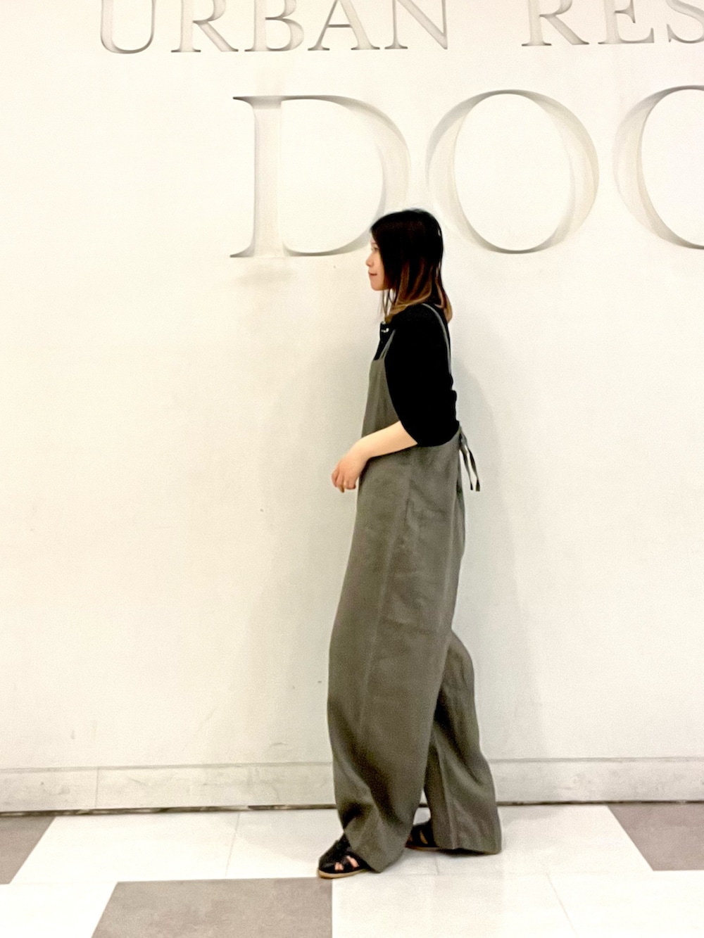 毎年人気のかぐれのリネンサロペットを着用してます!ゆったりとしたシルエットで軽い着心地です🫶🏻肩紐は細いストラップになっていて女性らしさも◎後ろ姿も可愛いです!