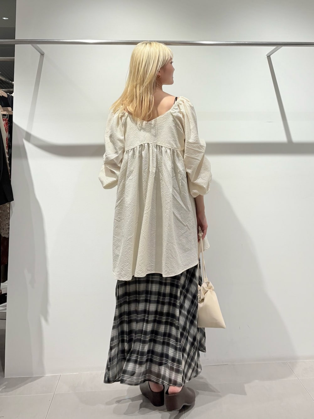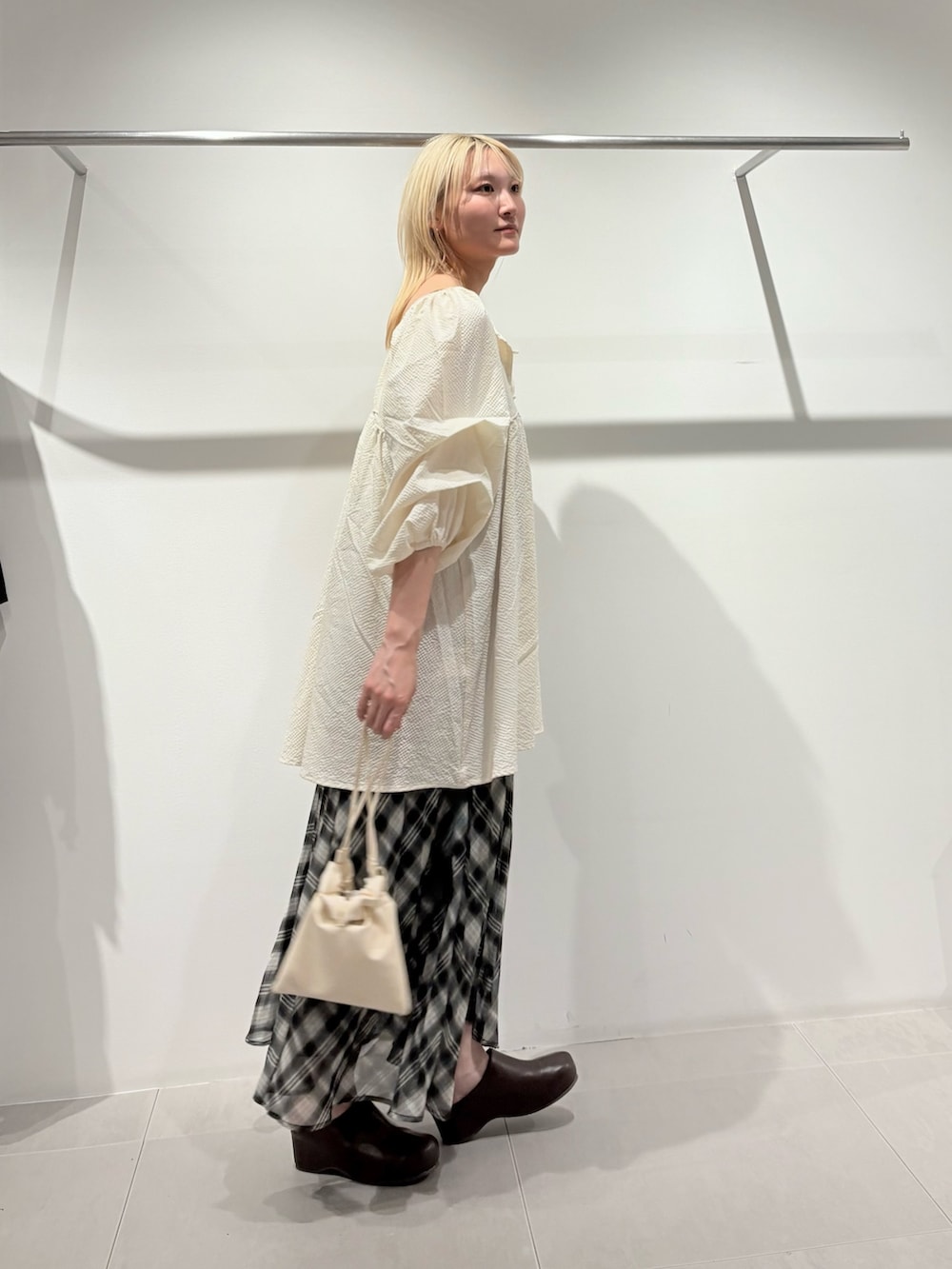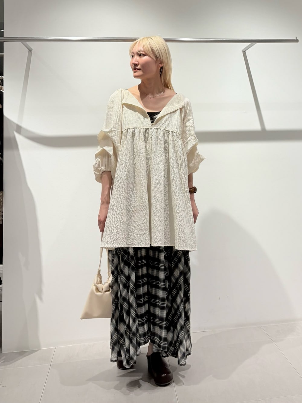 胸元からもチェック柄を見せることでコーデがまとまりこなれた印象に✨