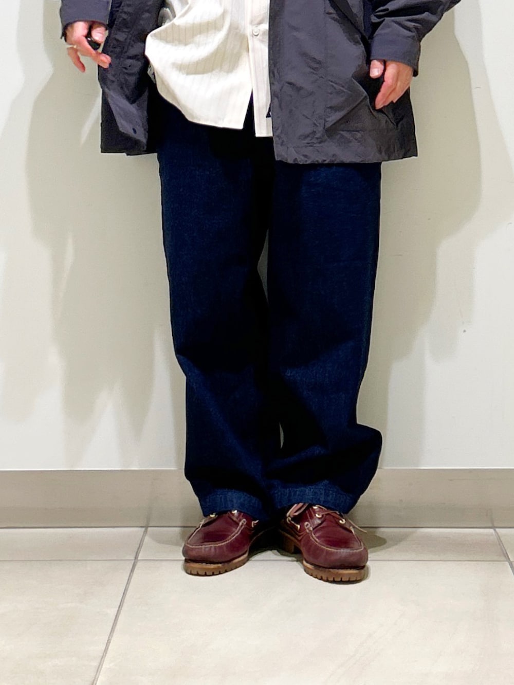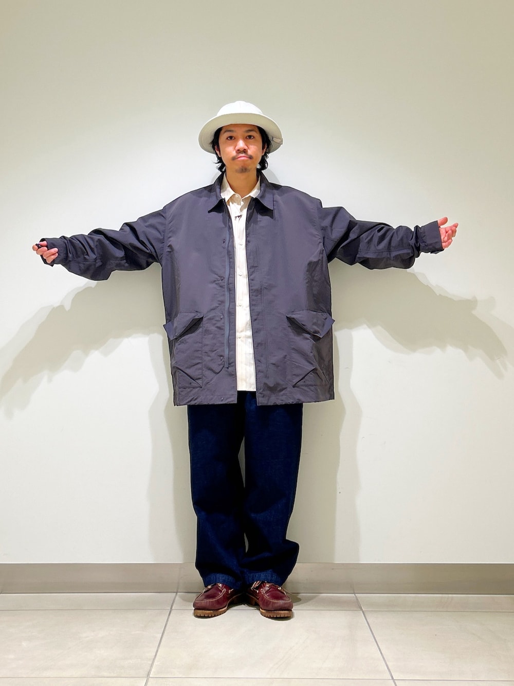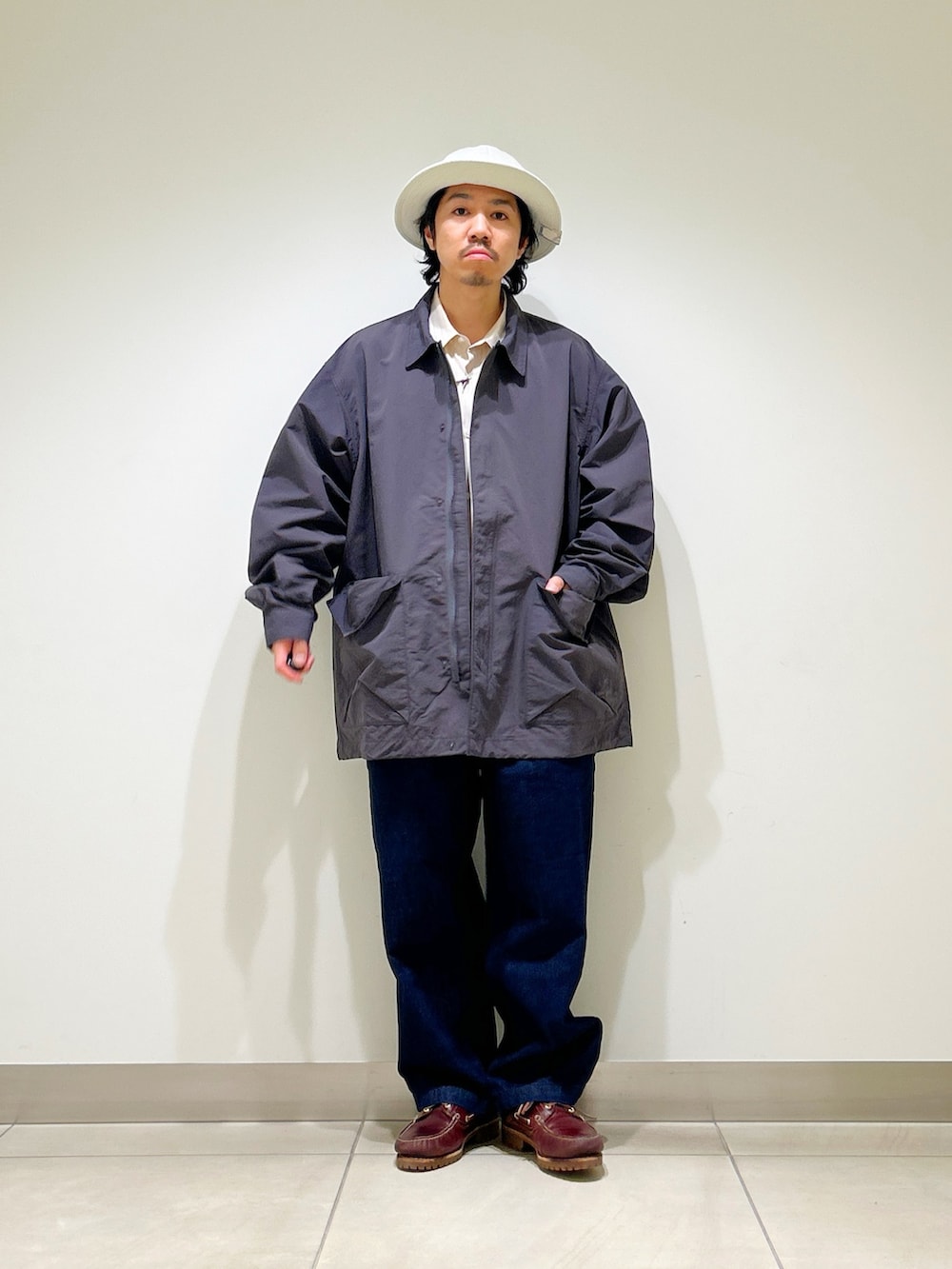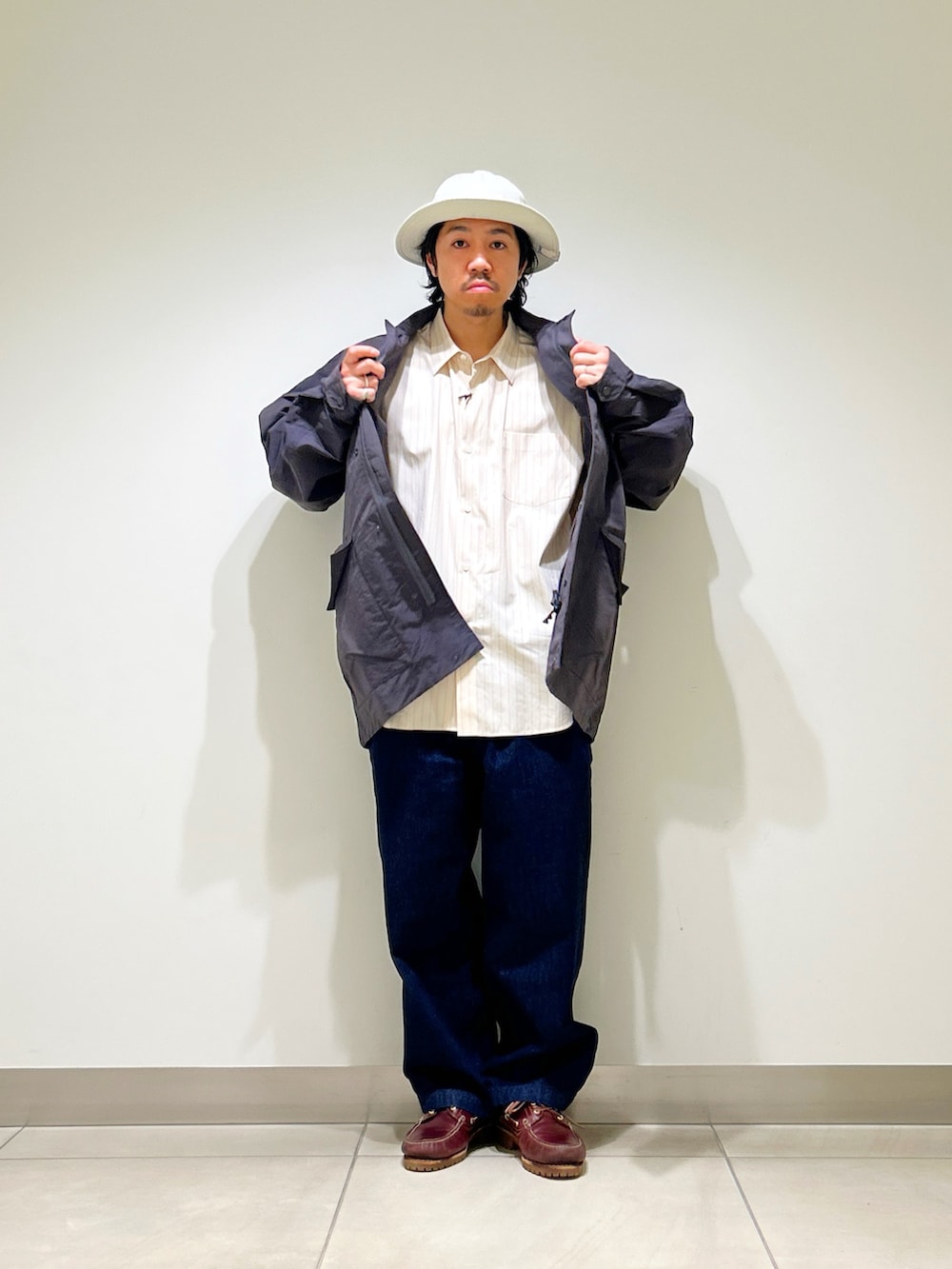 スノーピーク別注のナイロンジャケットをメインに、デニム合わせながらキレイ見えするシャツを合わせバランスをとったカジュアルスタイル!