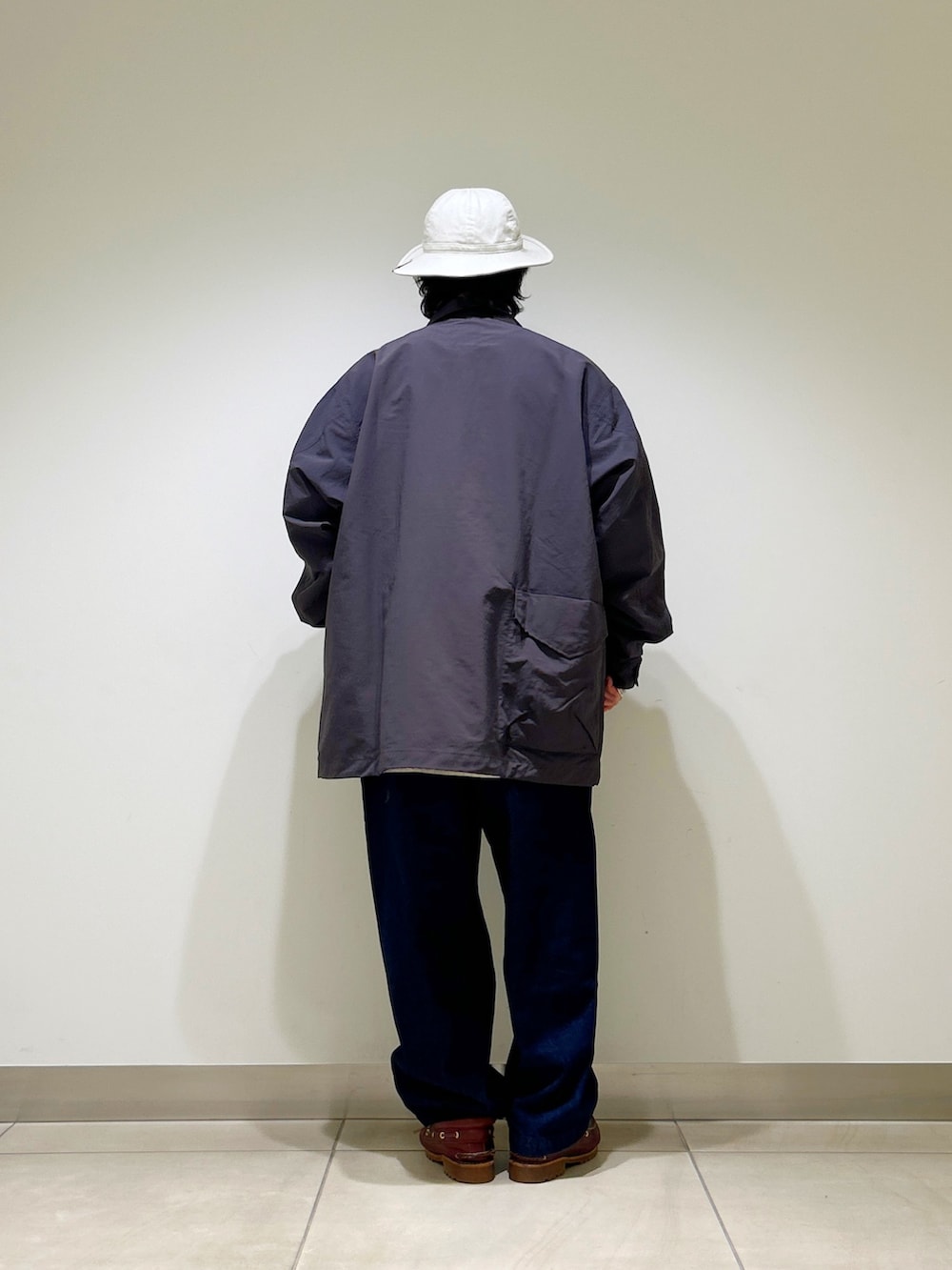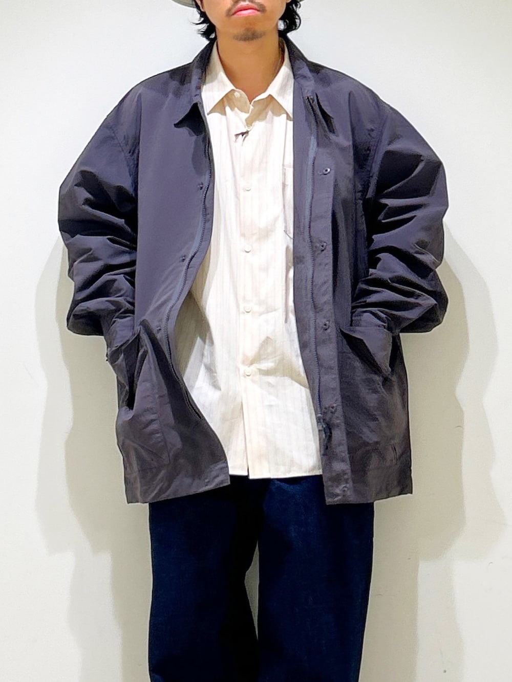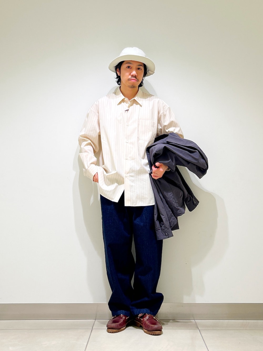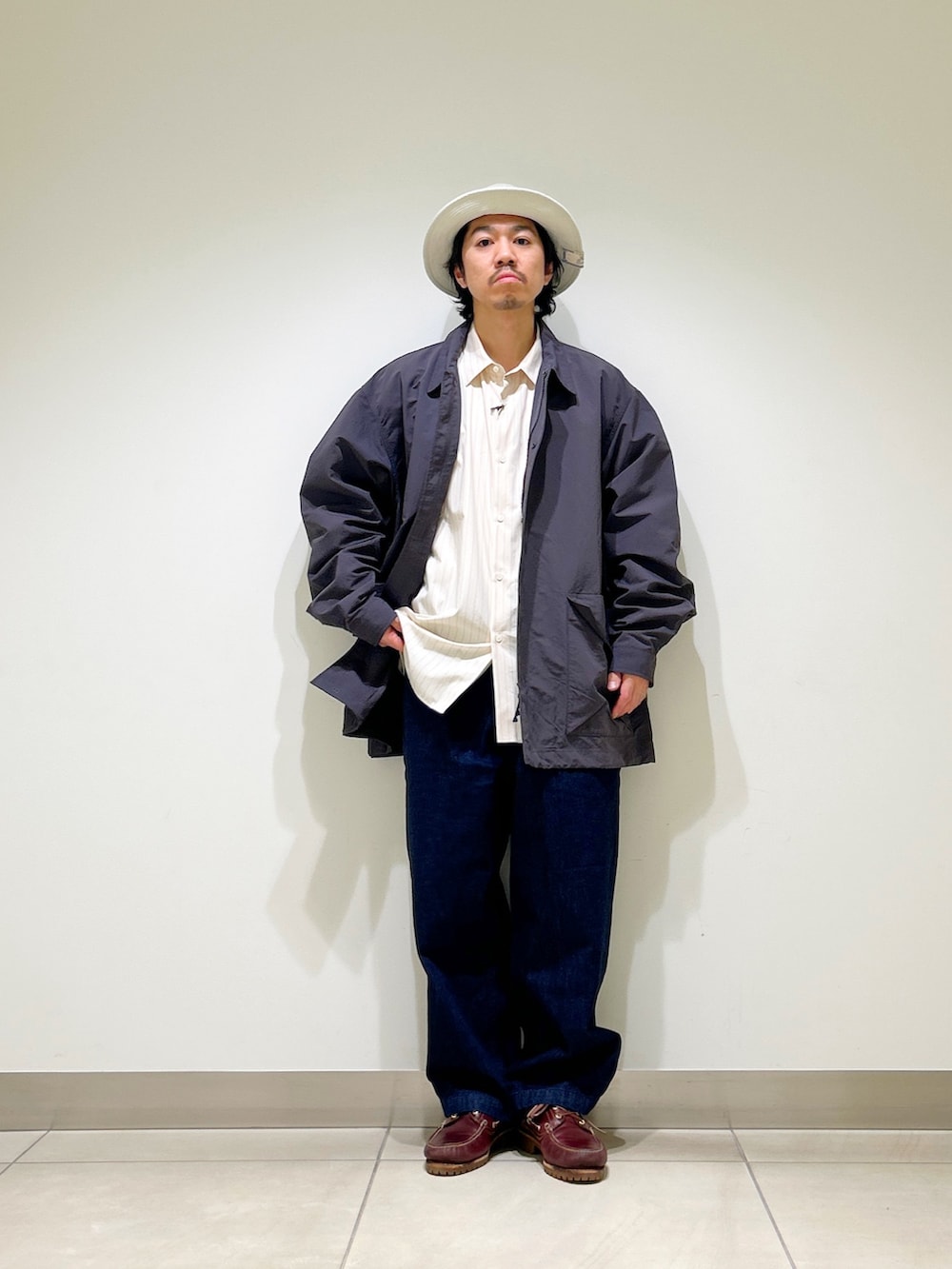 スノーピーク別注のナイロンジャケットをメインに、デニム合わせながらキレイ見えするシャツを合わせバランスをとったカジュアルスタイル!