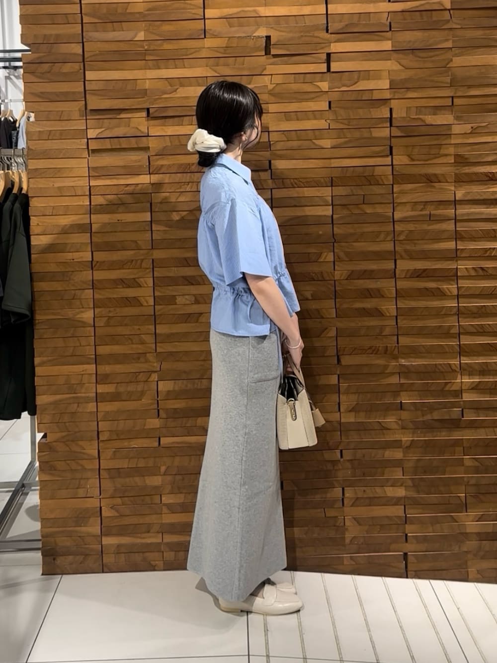 シャーリングシャツは、クロップド丈でどんなボトムスでも合わせやすいアイテムです🌼