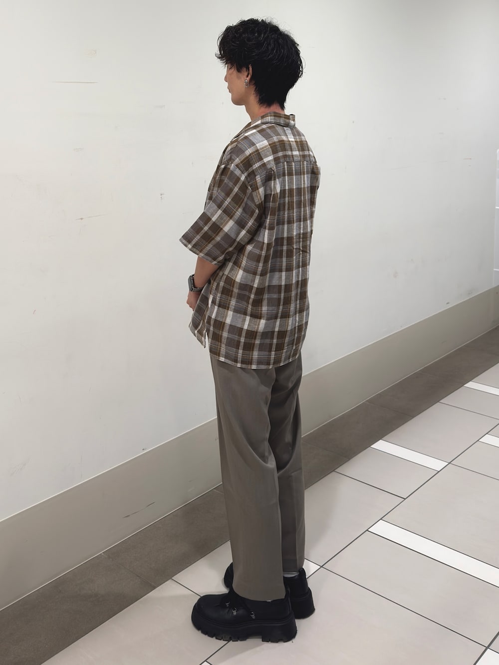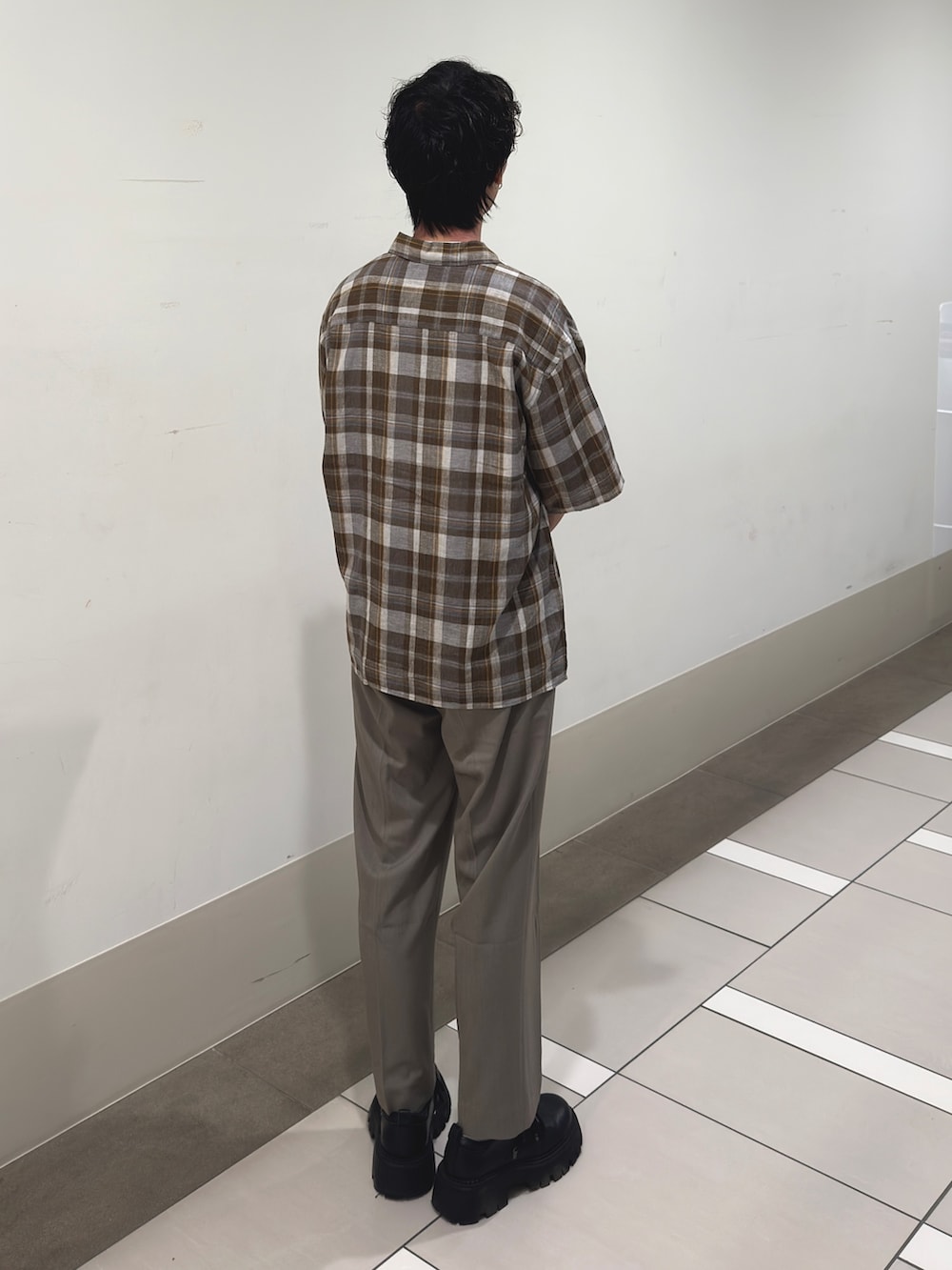 カバーリングリネンキャンプカラーシャツを使用したコーディネート。