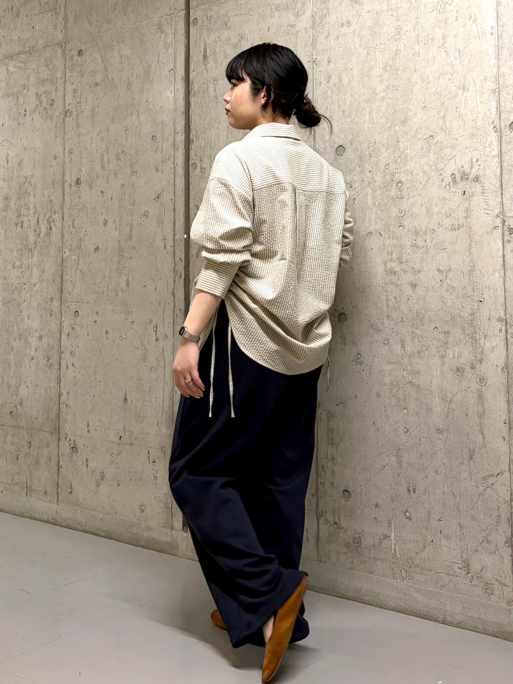 シャツはサッカー生地のサラッとした着心地でサイドにドロストが付いており、絞っても絞らず着ても可愛いシャツになっています✨