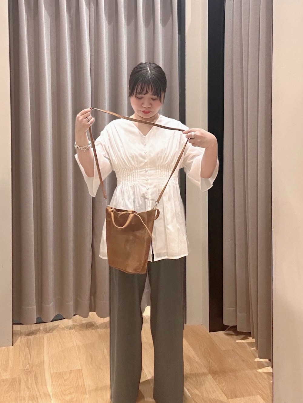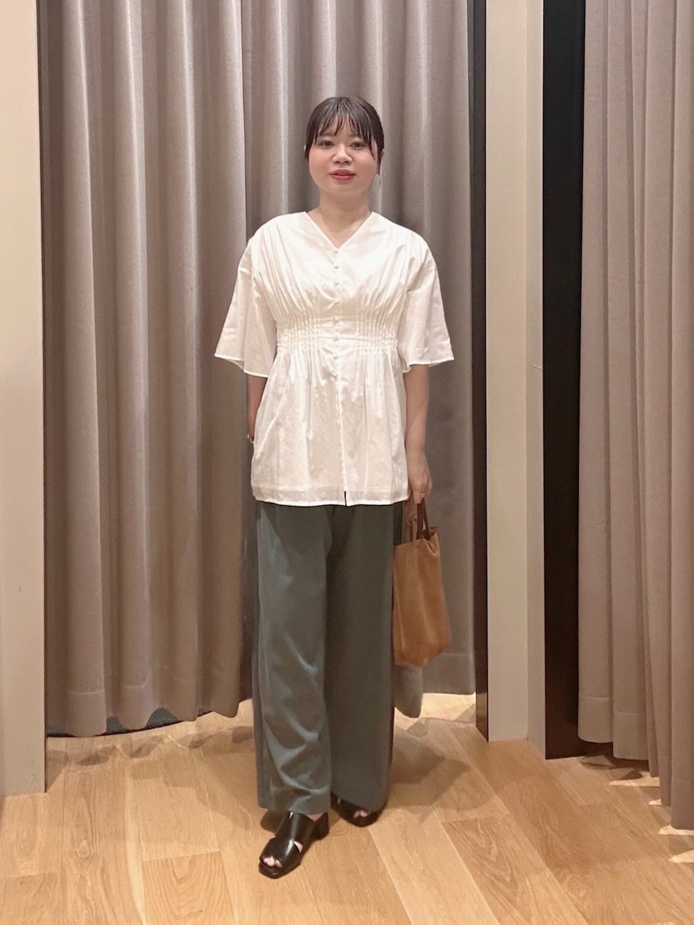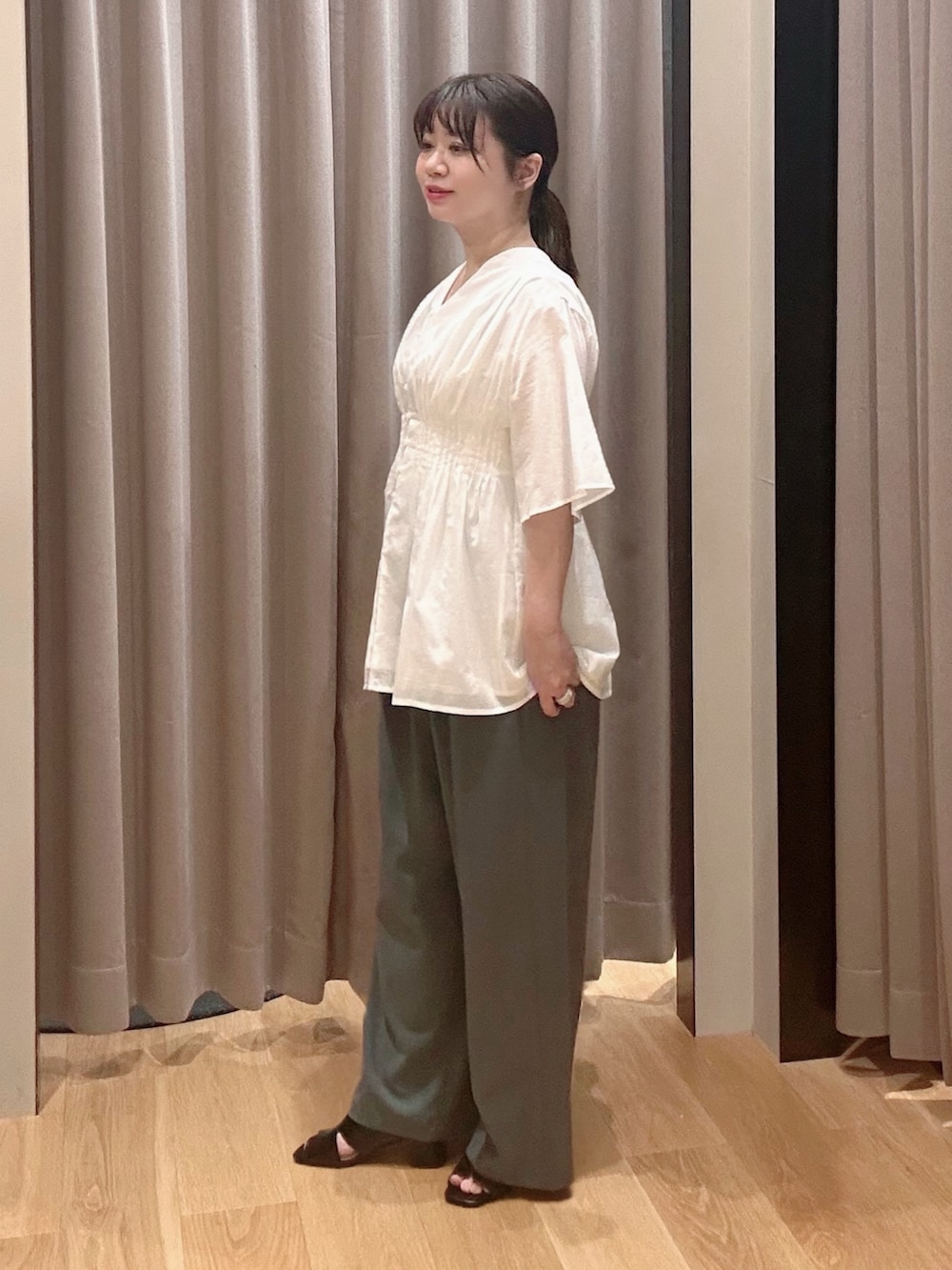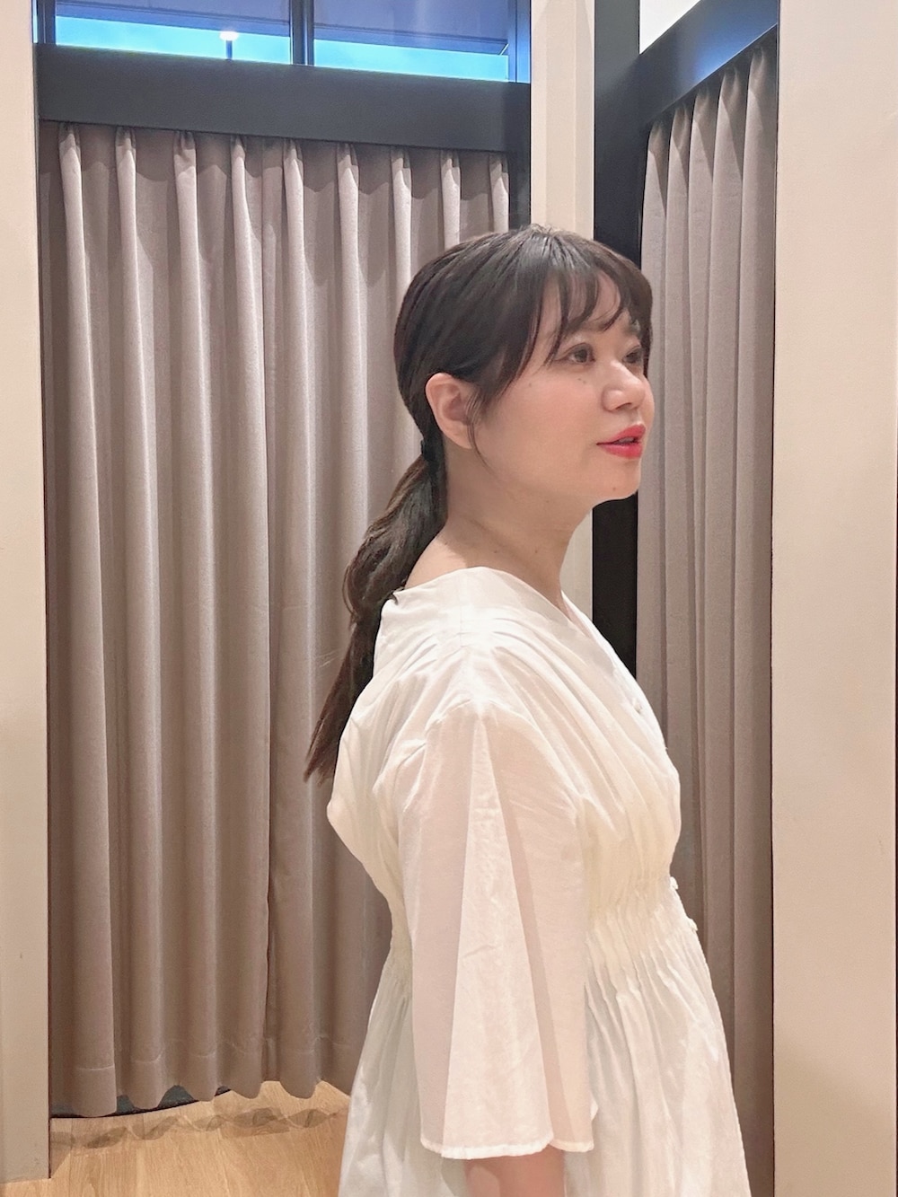 ハーフスリーブで二の腕まで隠れるフレアシルエット☺️🔅