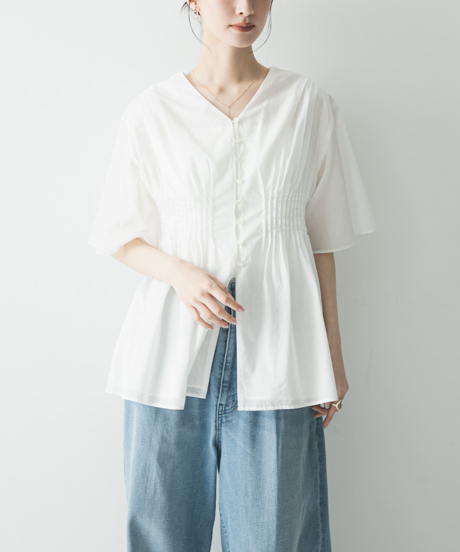URBAN RESEARCHコットンボイルタックデザインブラウス- カラー: