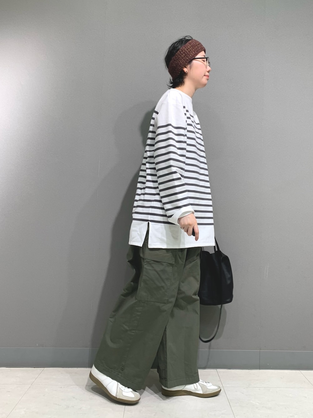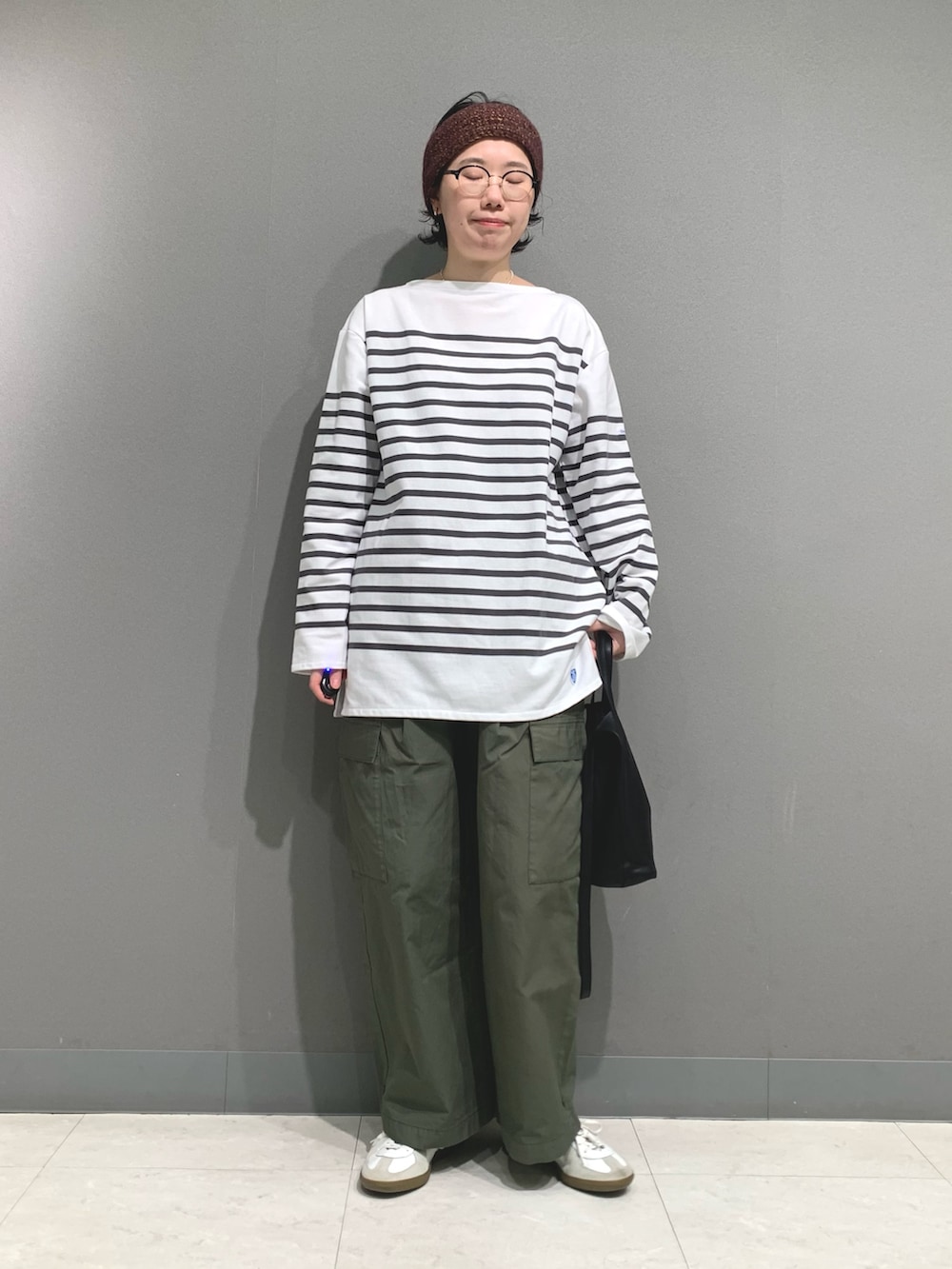 定番のユーティリティパンツ。ハリがありズドンと太いシルエットがかわいいです。オールシーズン使えて一本あると重宝します。