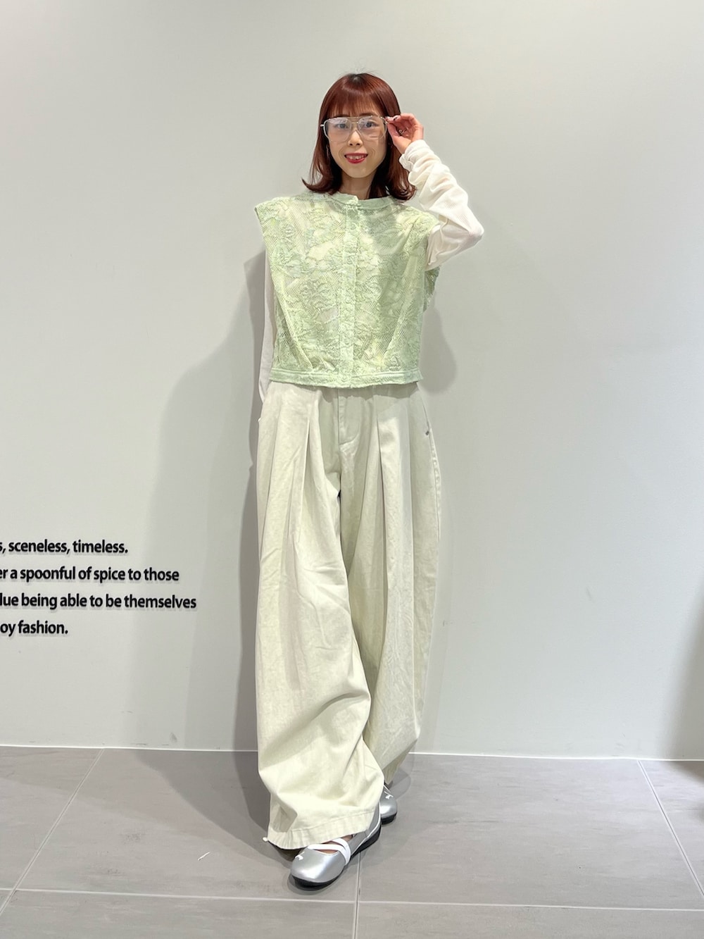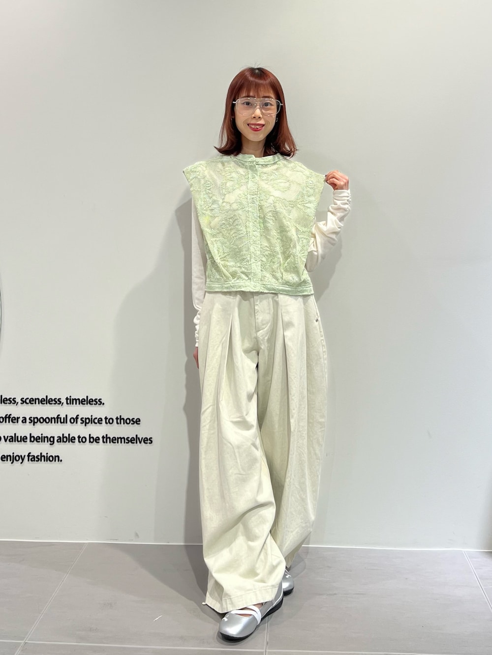 レースベストは今の時期は長袖インナー、夏はキャミ合わせがおすすめです💫