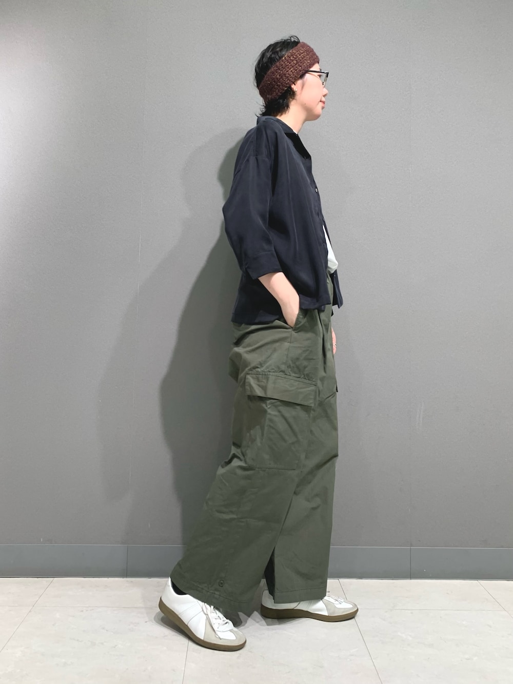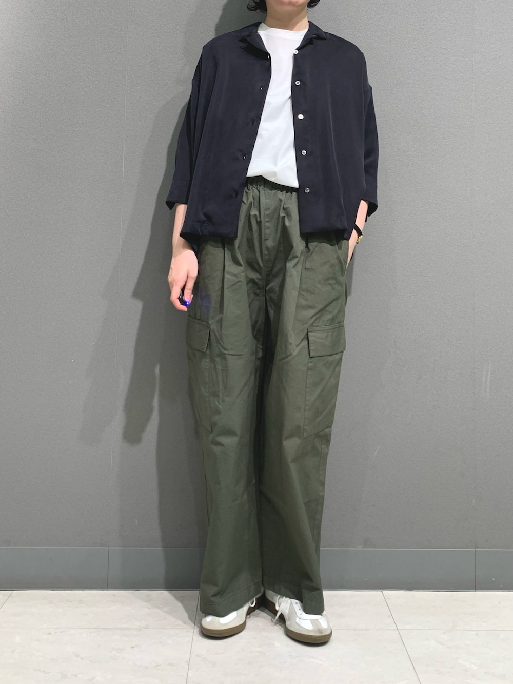 定番のユーティリティパンツ。カーキは差し色にも使えて一本あると便利です。カジュアルな着こなしに相性◎