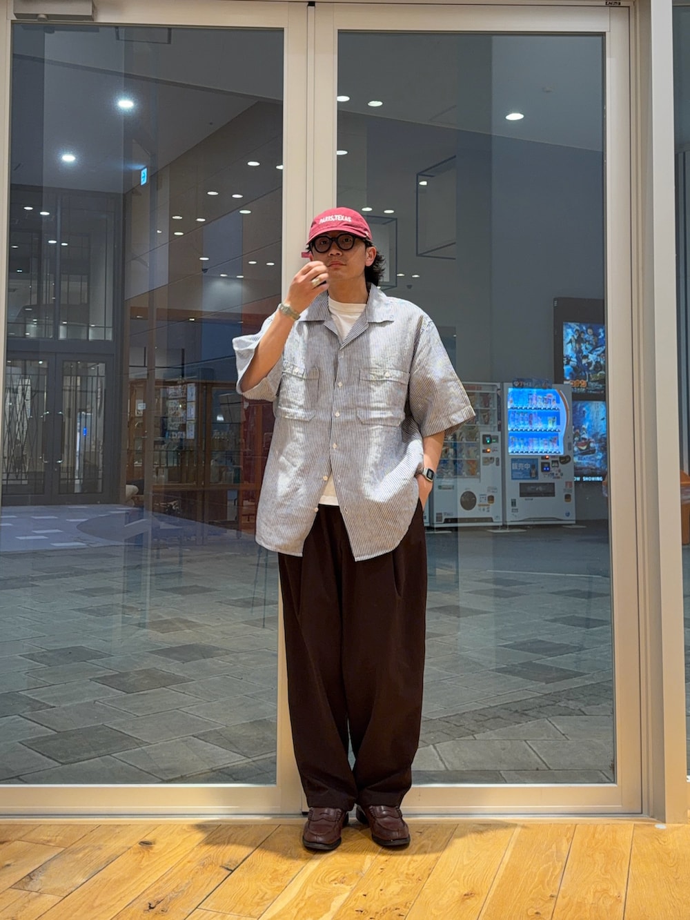 リネンシャツにDot Airのボトムスで
