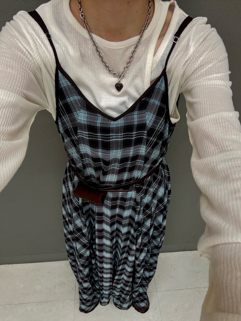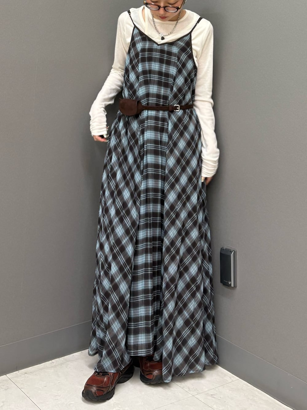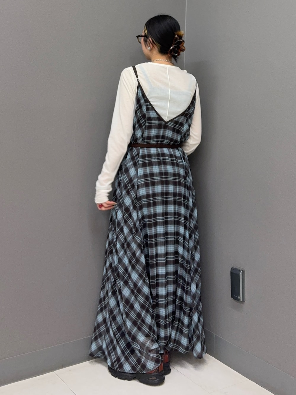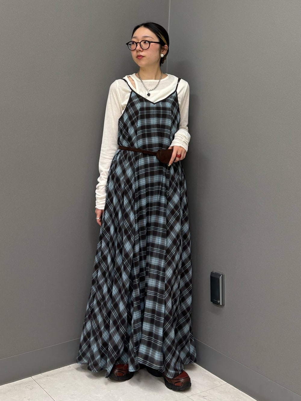 ワンピースは、153㎝で鎖骨のあたりまで肩紐アジャスターを伸ばすと写真の丈感になります!