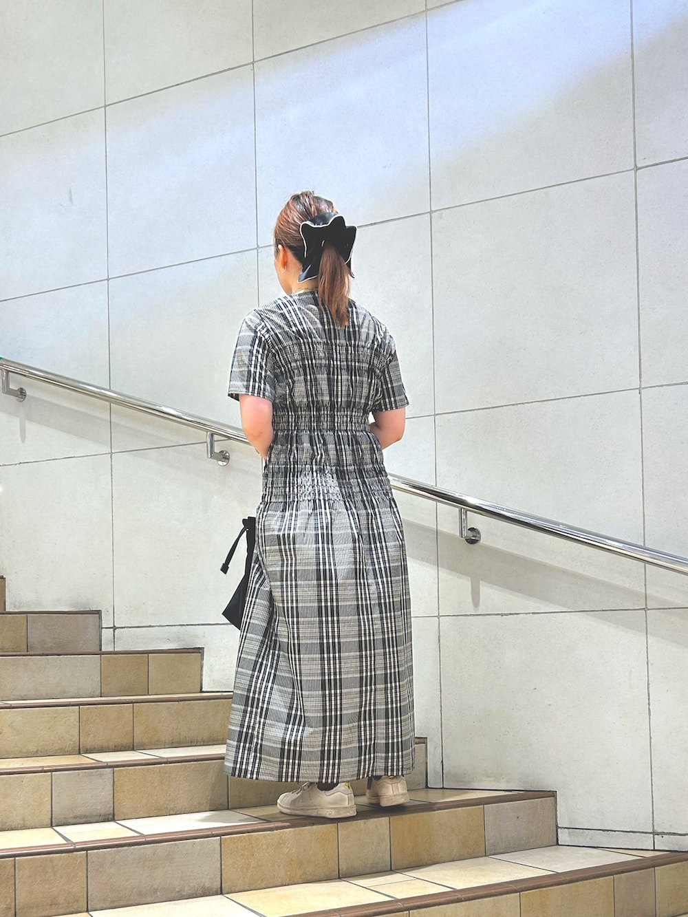 チェック柄ワンピースを主役にした、落ち着いた大人カジュアルコーデです♪