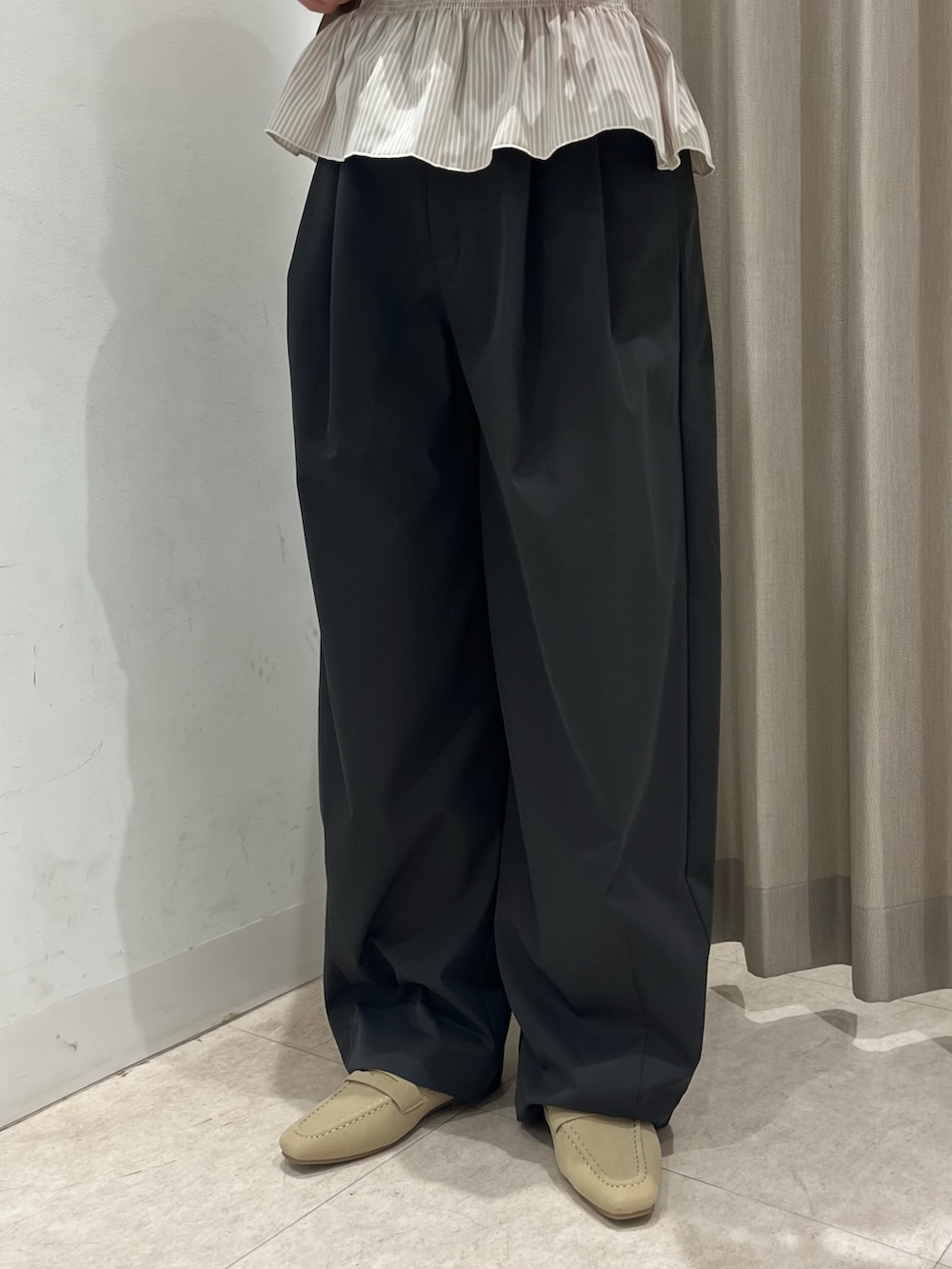 コクーンパンツは程よいワイド感と軽い着心地がポイント。猛暑の日でも暑苦しくなくさらっと着られそうです!