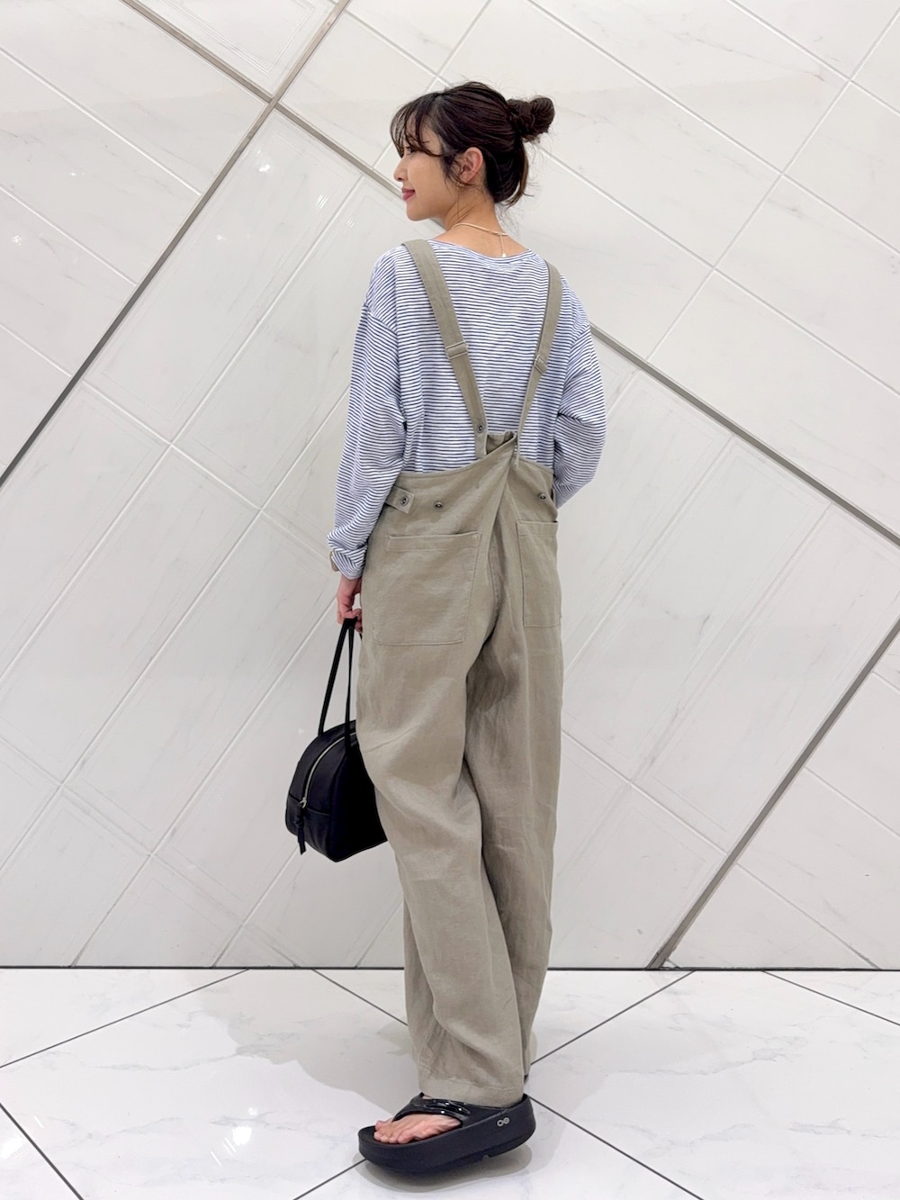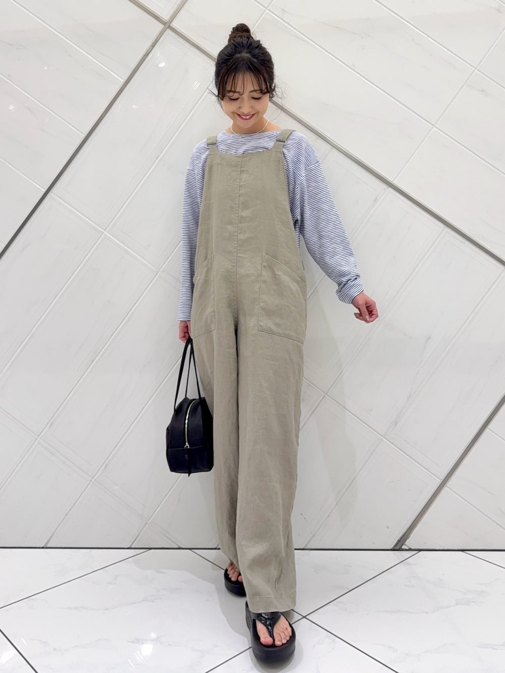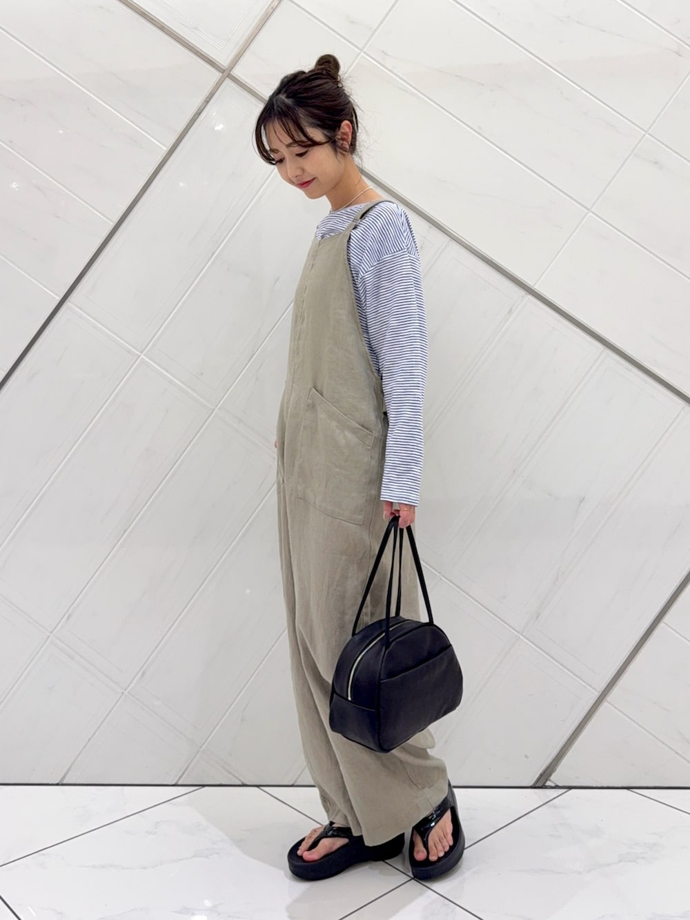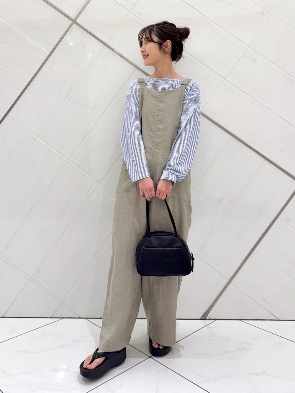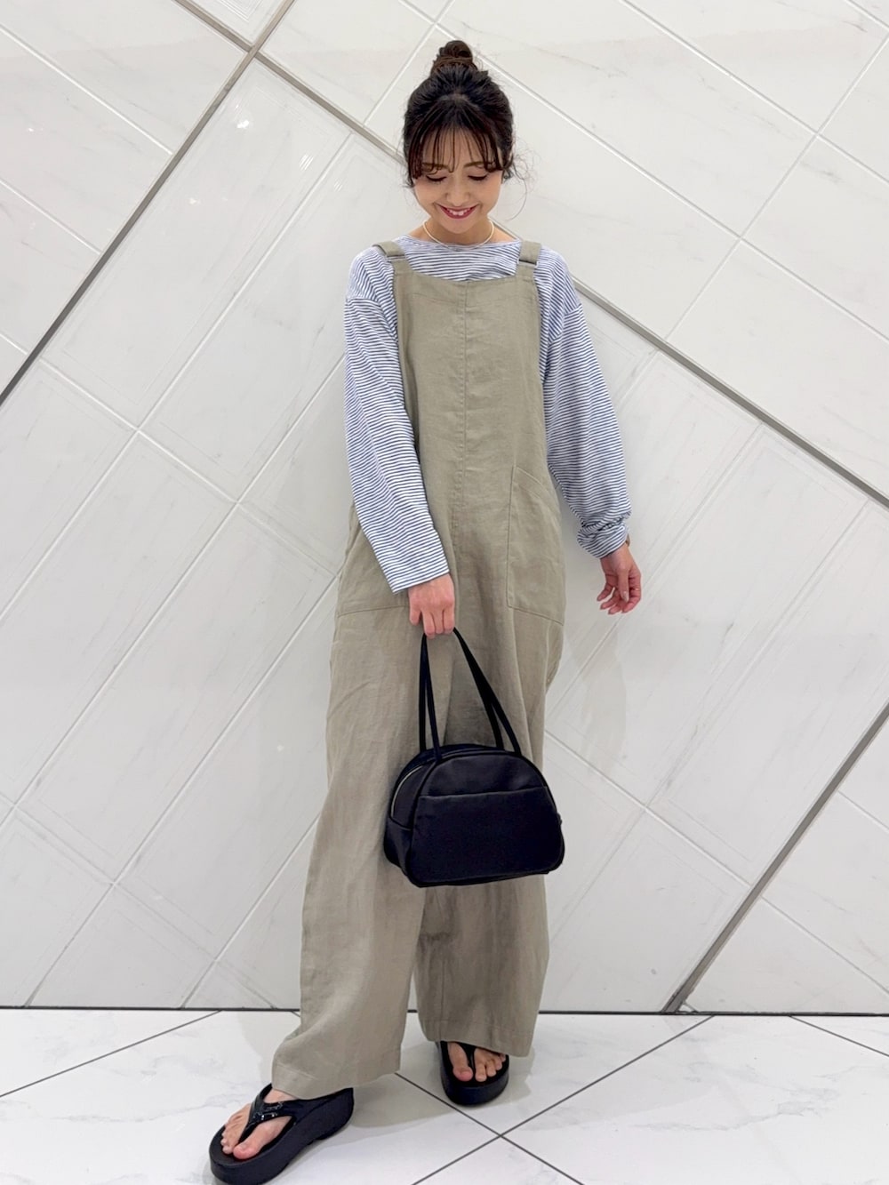 サロペットはかぐれのアイテムで、体のラインを拾わず楽ちんな着心地です。