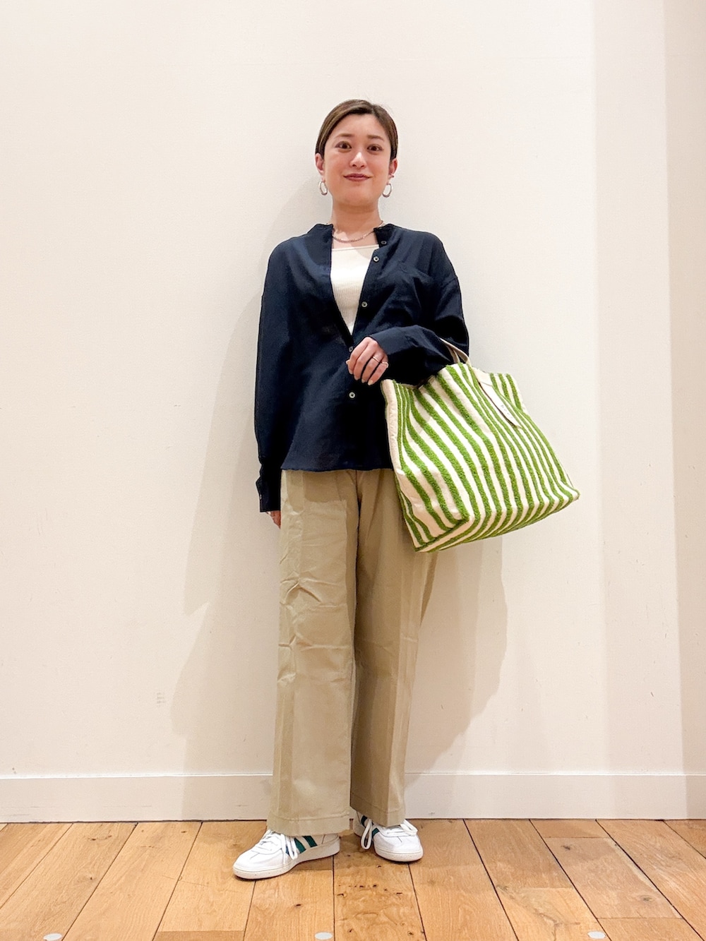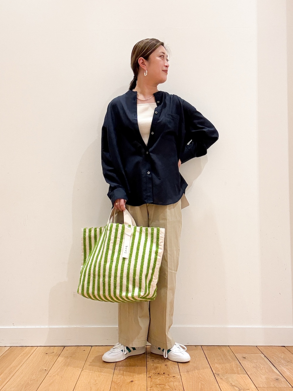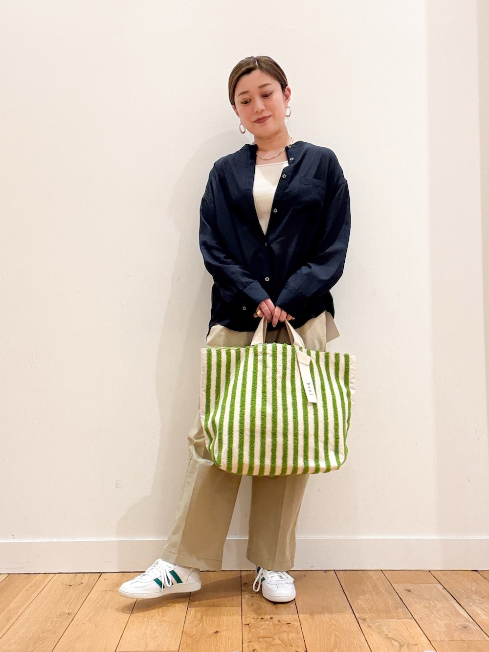 差し色にバッグとスニーカーでグリーンを合わせてみました◎