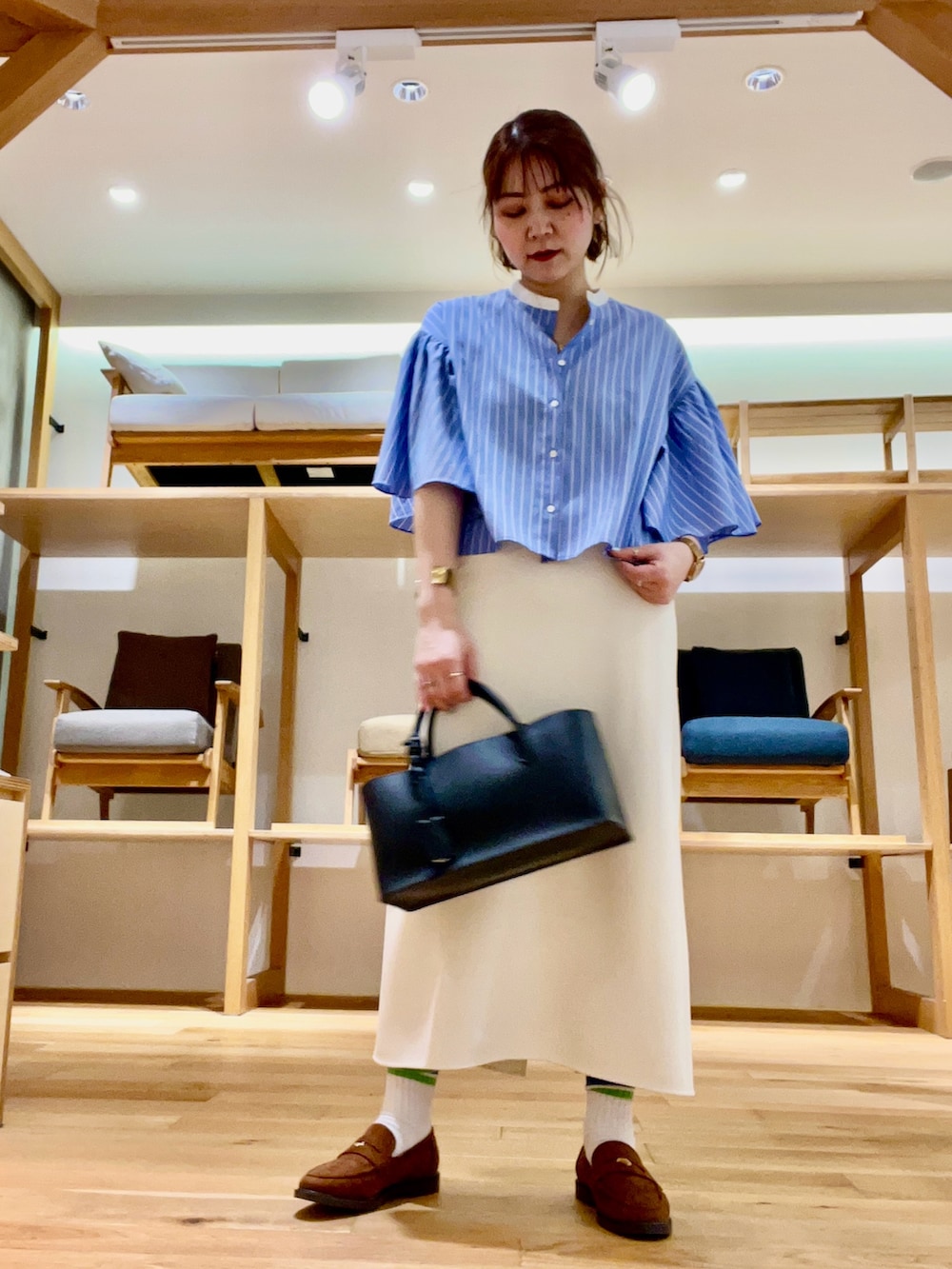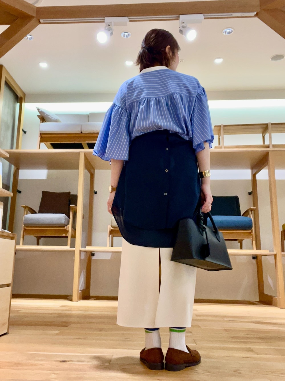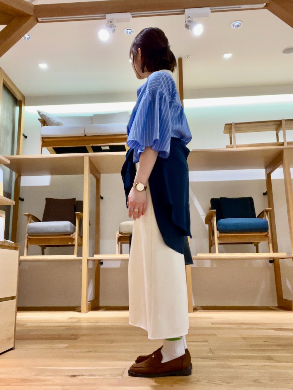 スカートはスッキリ着用ができるストレートなシルエットで柔らかく着心地が◉