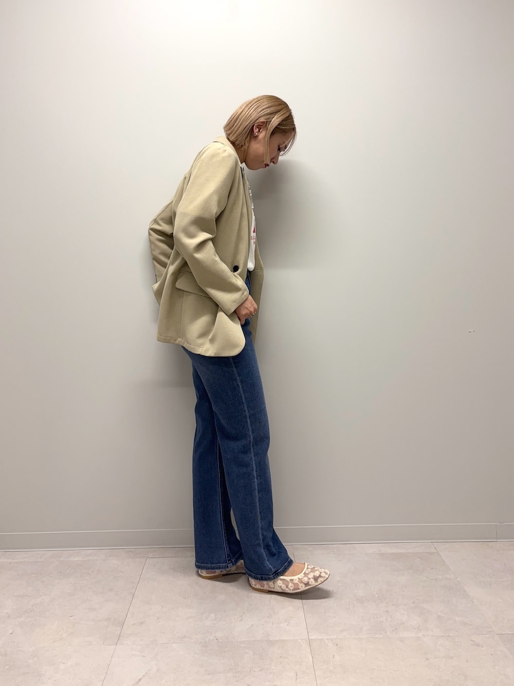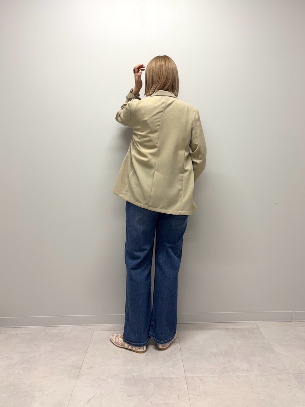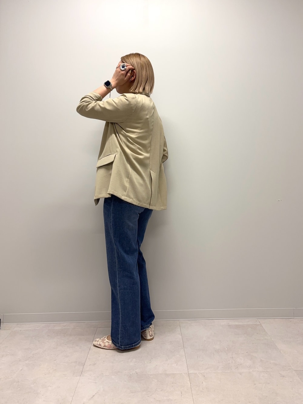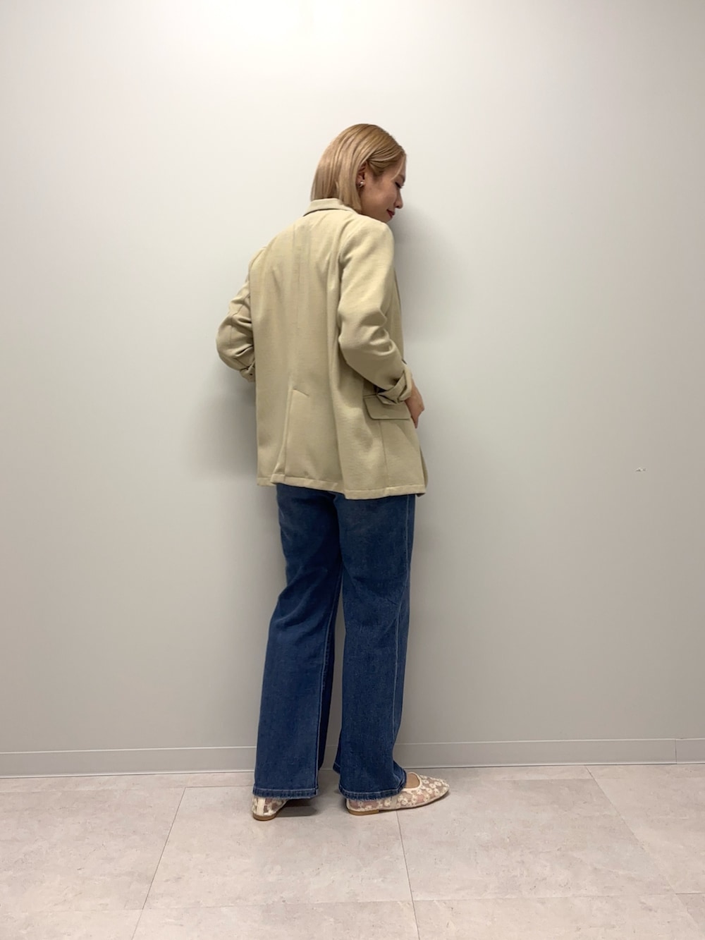 裏地のないサラリとした軽めのジャケットです!形はダブルブレストのキレイめも残しつつでオンオフどちらにも着用頂けます!