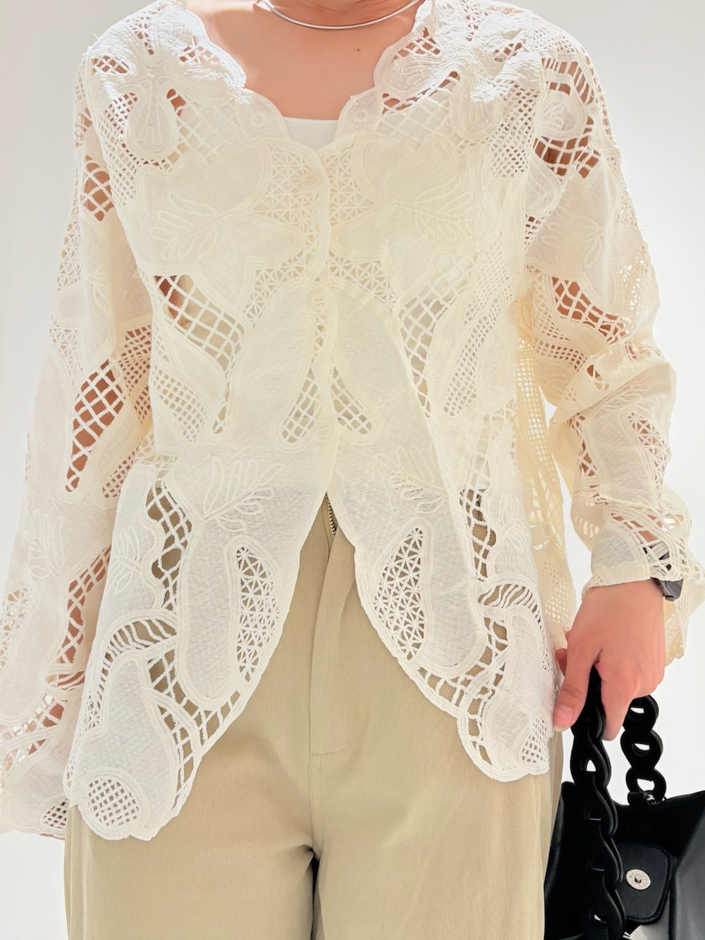SENSE OF PLACEノーカラーレースジャケット- 着用カラー: