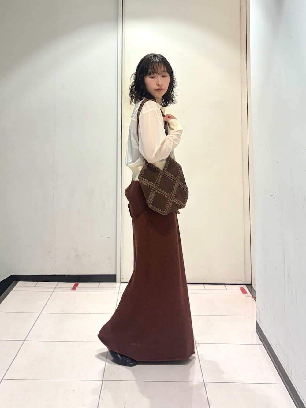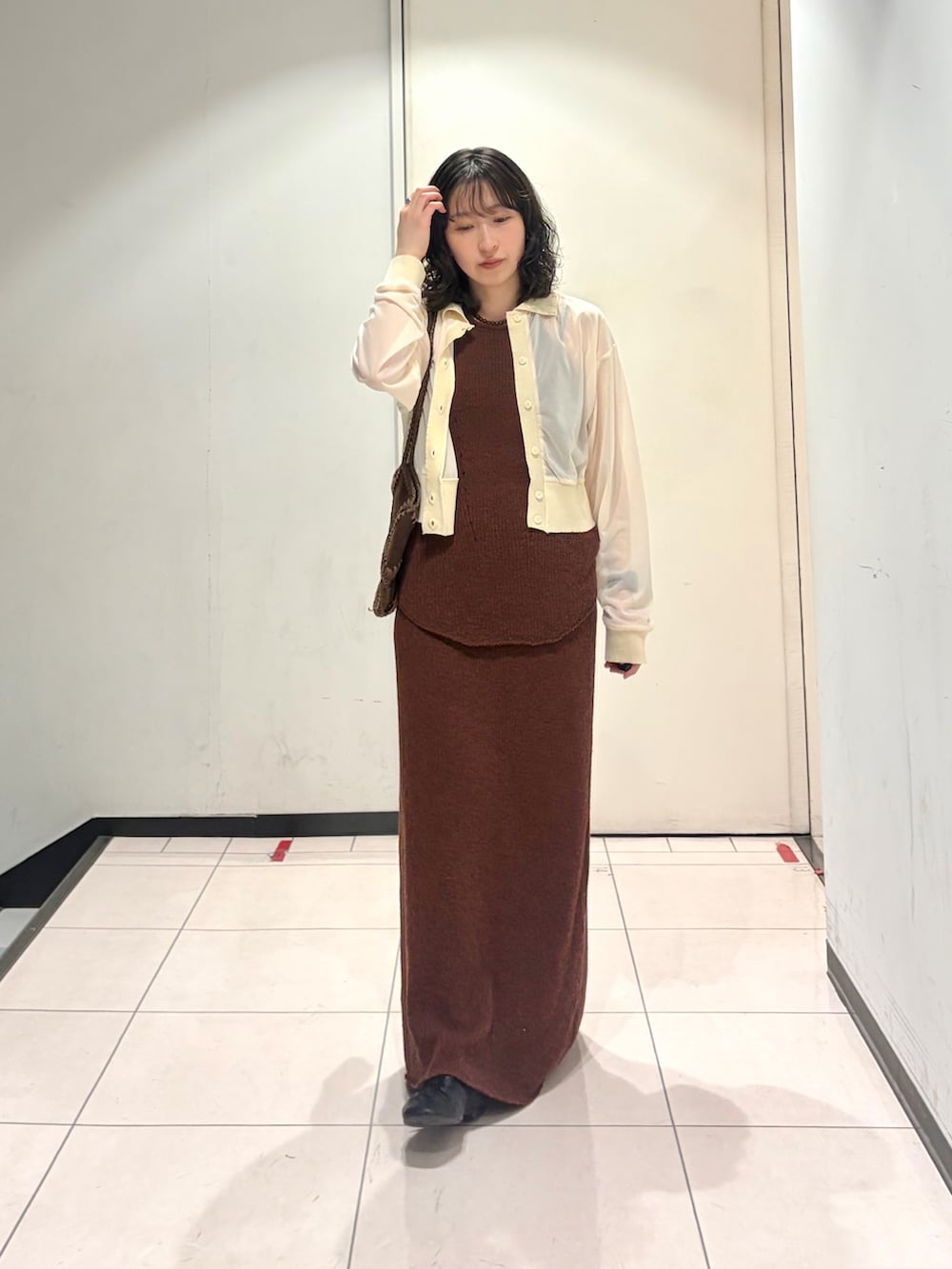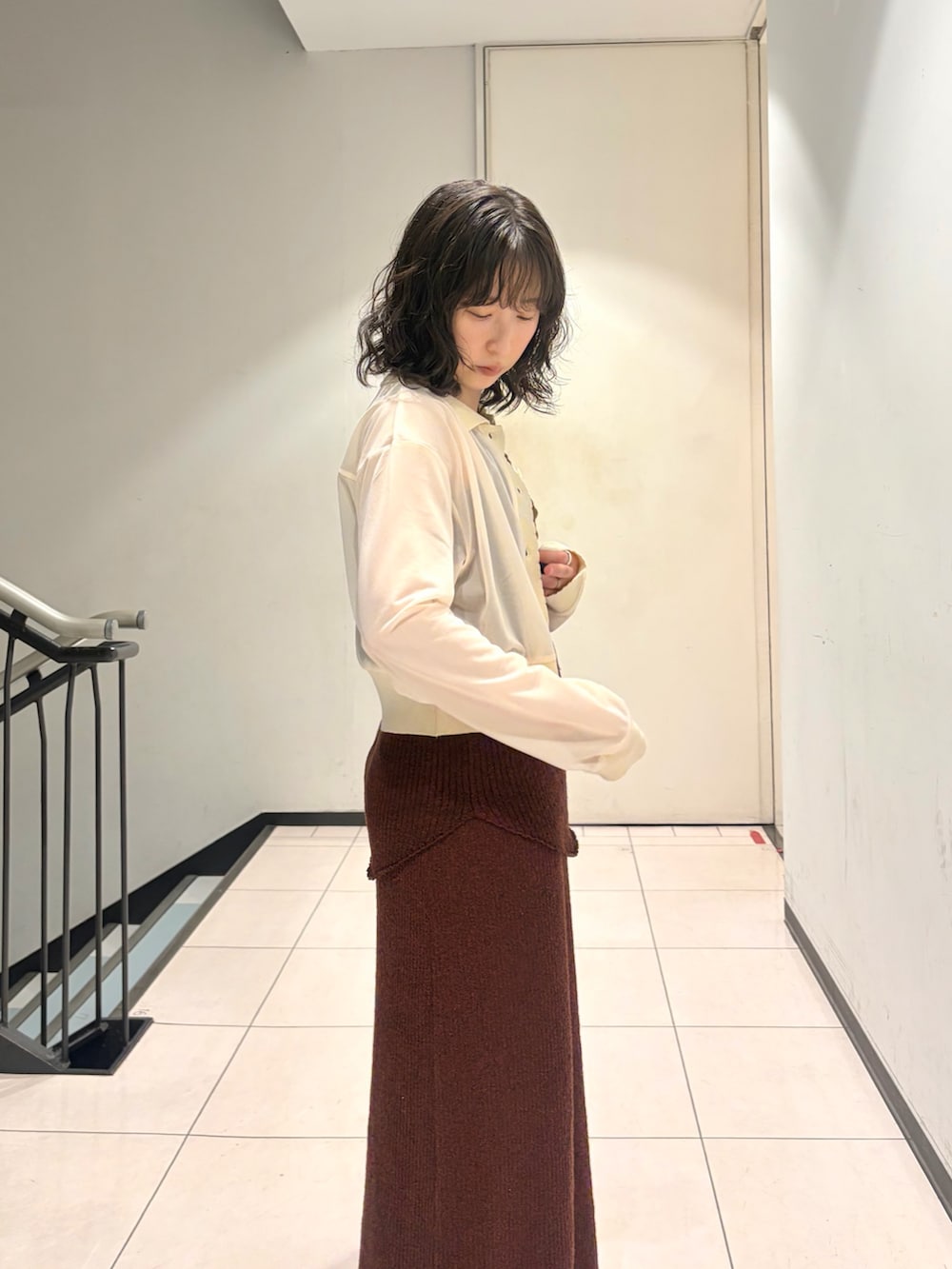 キャミソールとスカートを合わせているので、腰回りに裾のラウンド感が出てレイヤードしやすいです☺︎