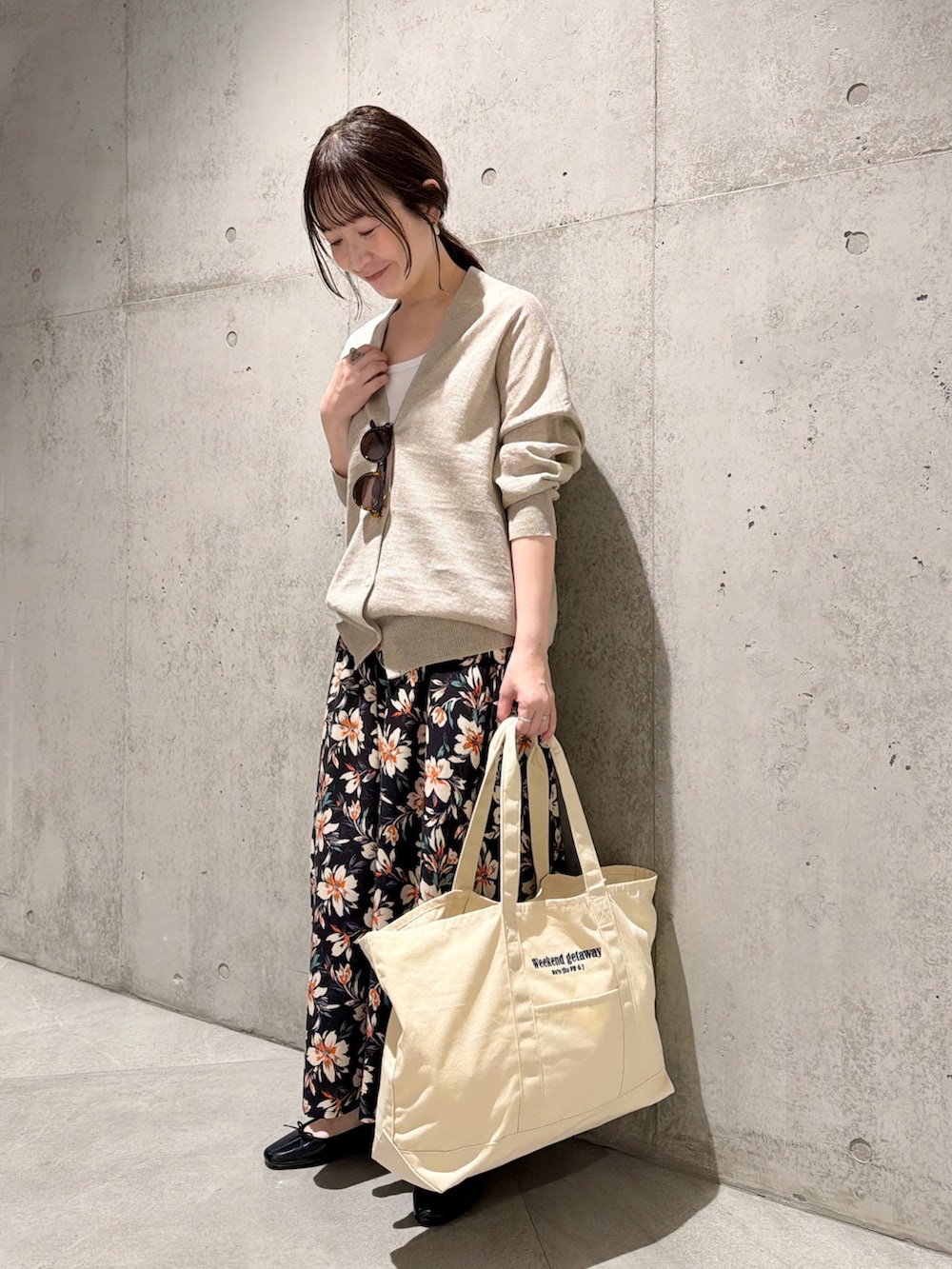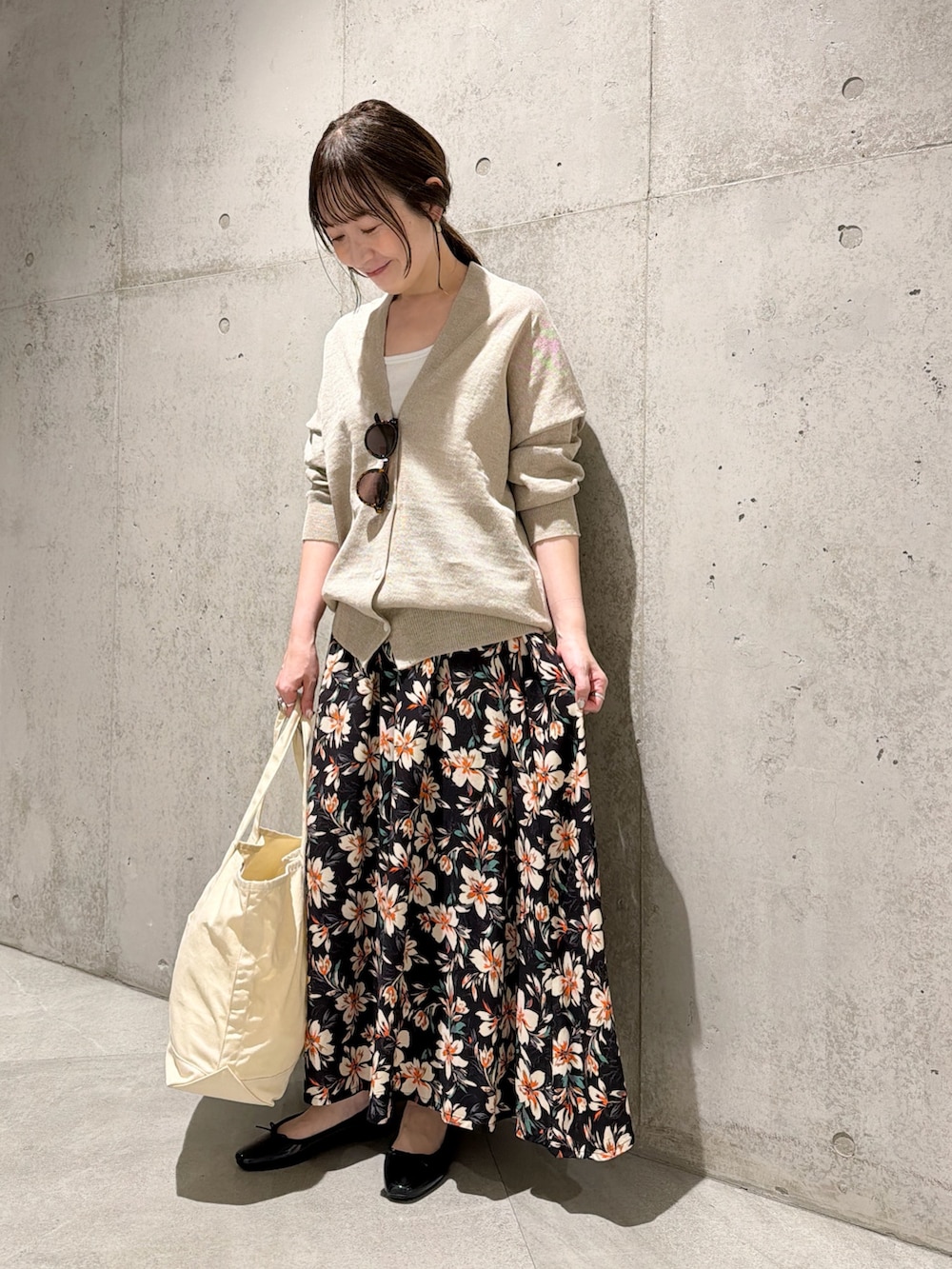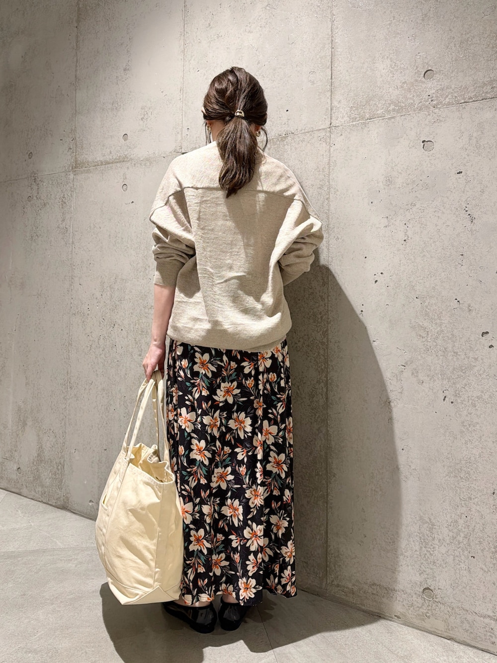今回は、花柄のスカートを合わせた、大人のリラックススタイル。