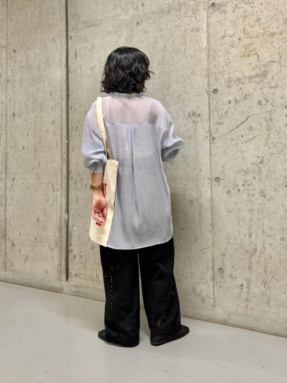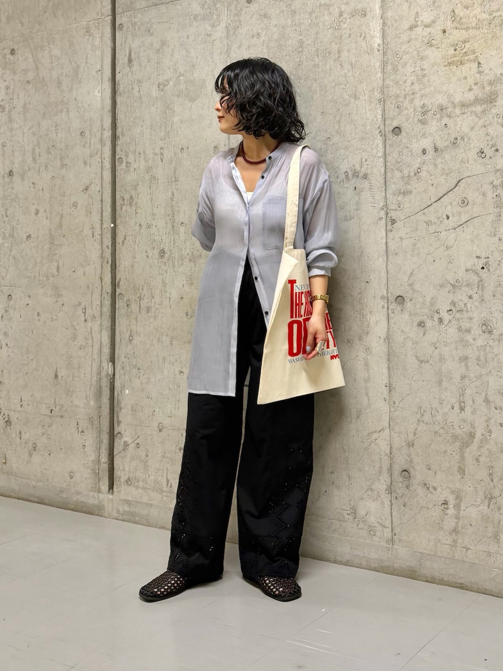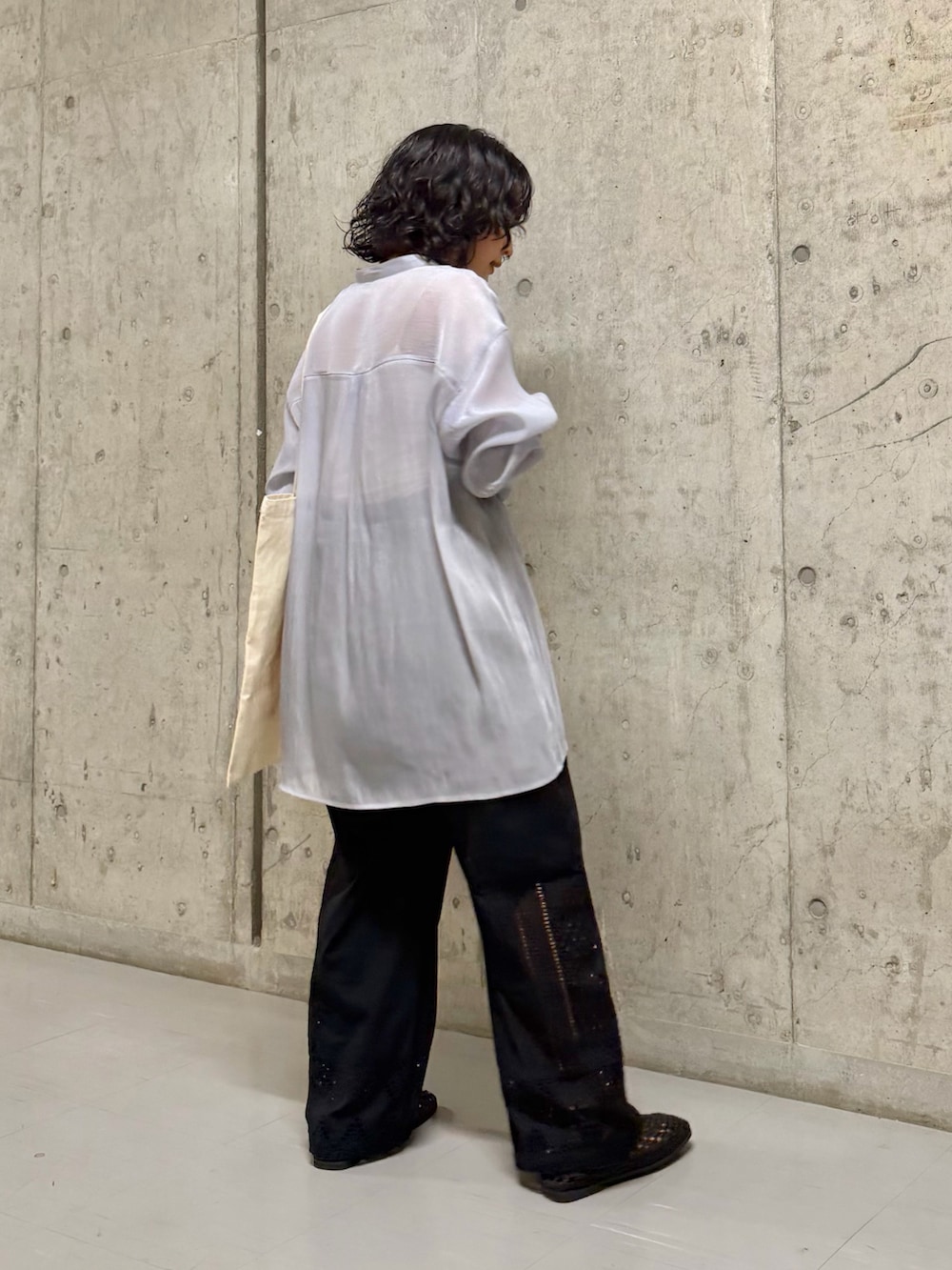 女性らしいシャツとハリのあるパンツでメリハリのあるコーデにしました!