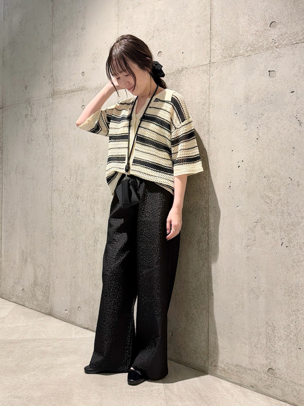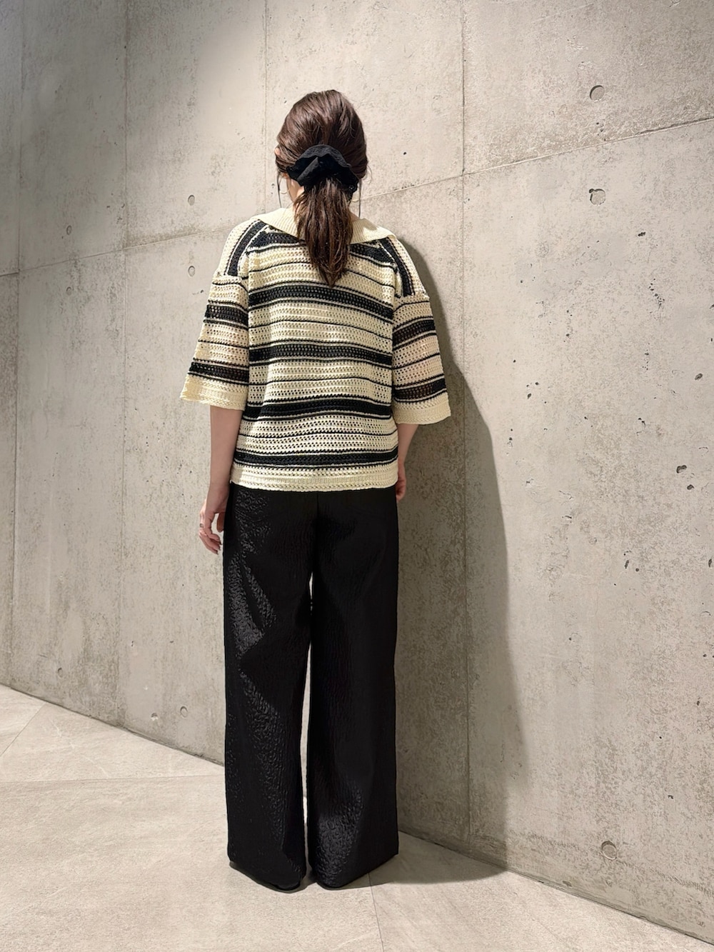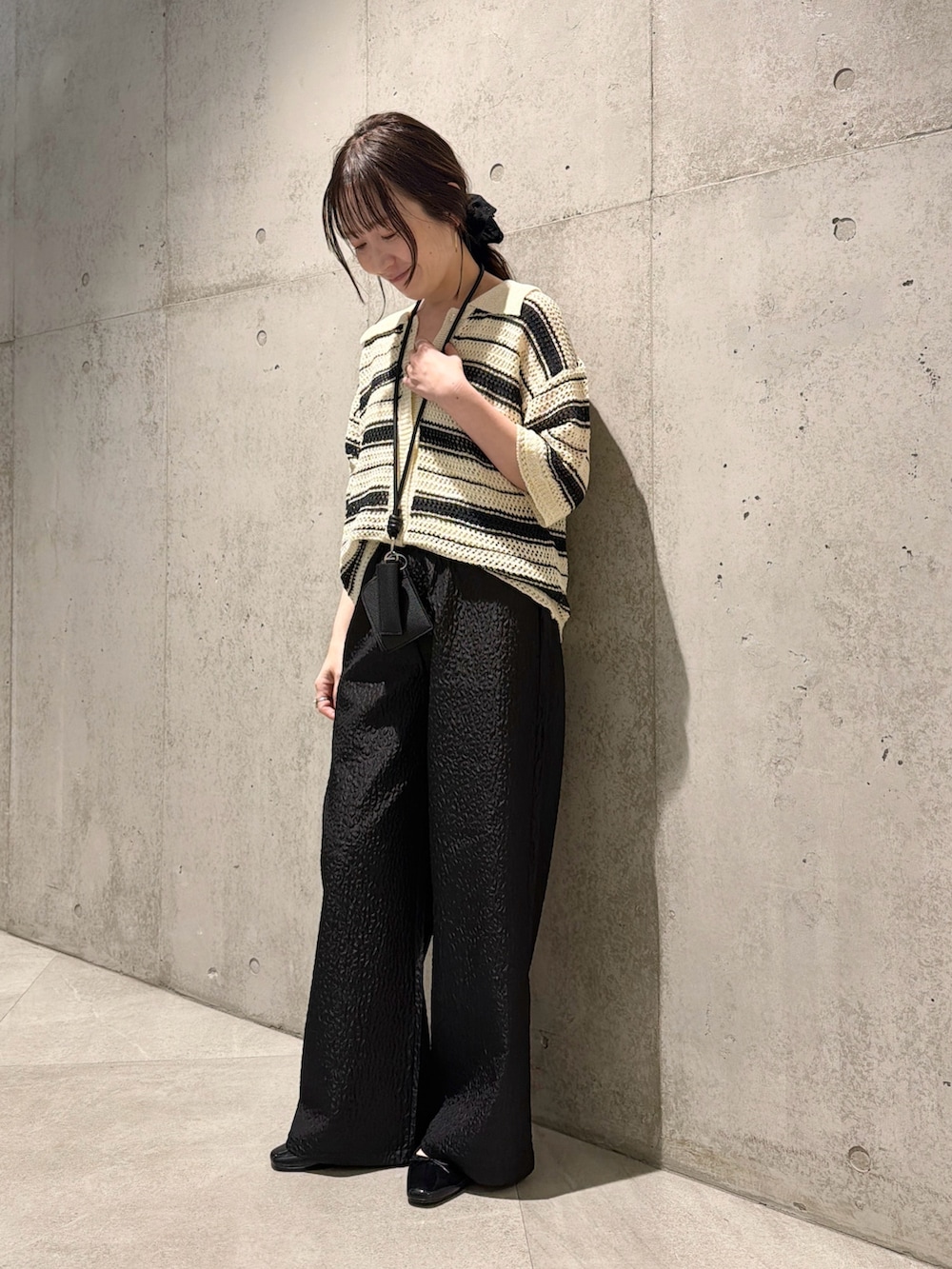 今回は、凸凹とした表情のある生地が特徴的なパンツと、モノトーンでまとめたコーディネートです。