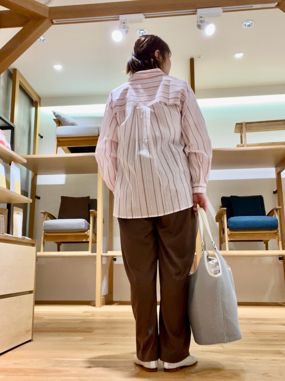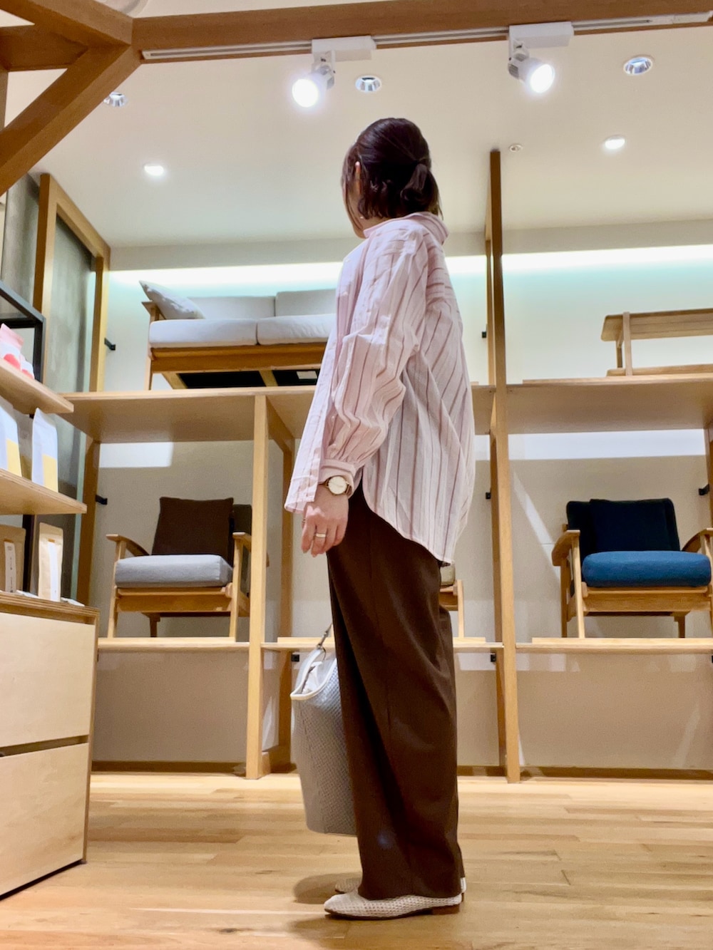 シャツはストライプのシャツでストライプが主張しすぎないのであまり柄物を着ない方にも挑戦していただきやすいです◉
