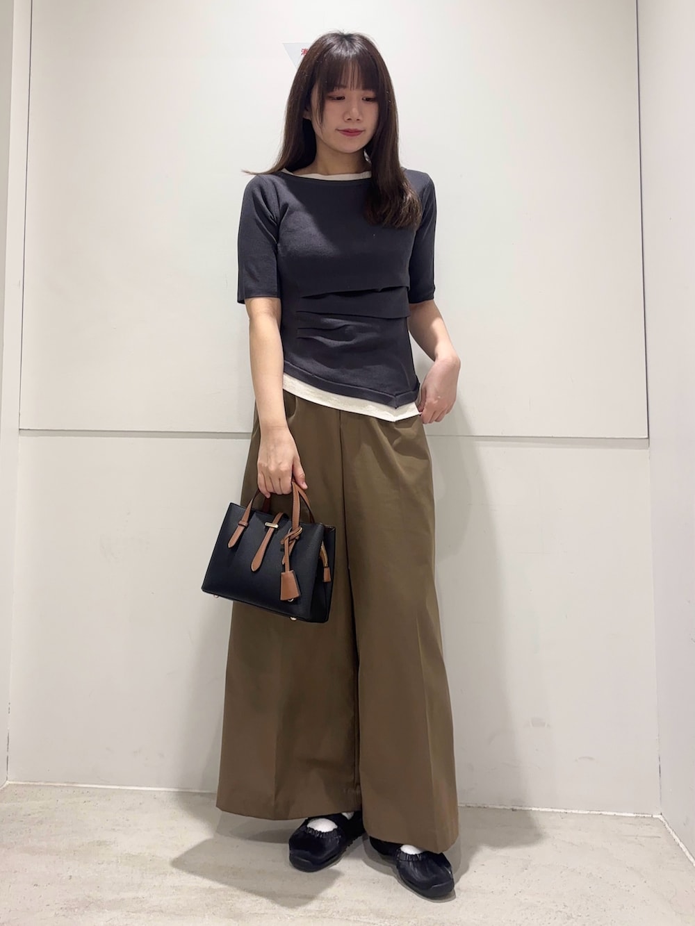 トップスはギャザーが入っており、タックインしなくてもすっきりしたシルエットに○