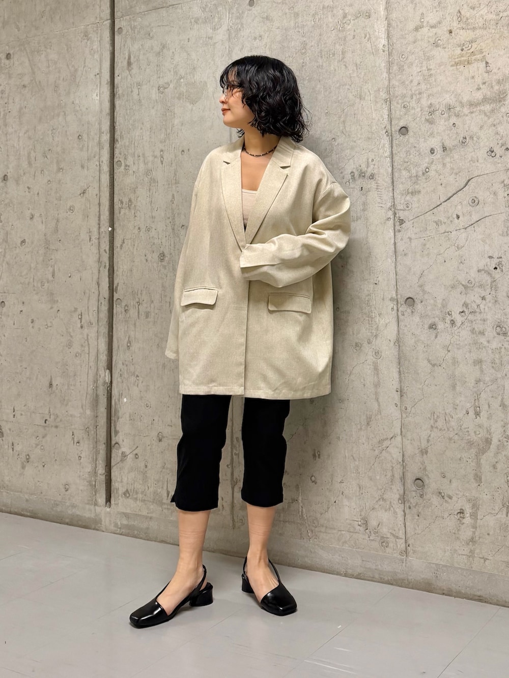 ジャケットをメインにコーディネートしました!バランスよくトレンドのカプリパンツで女性らしい印象になります!
