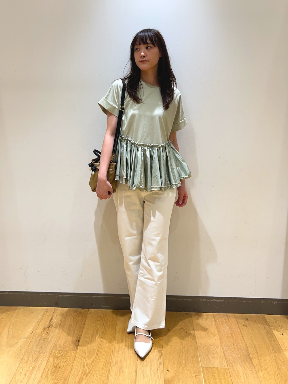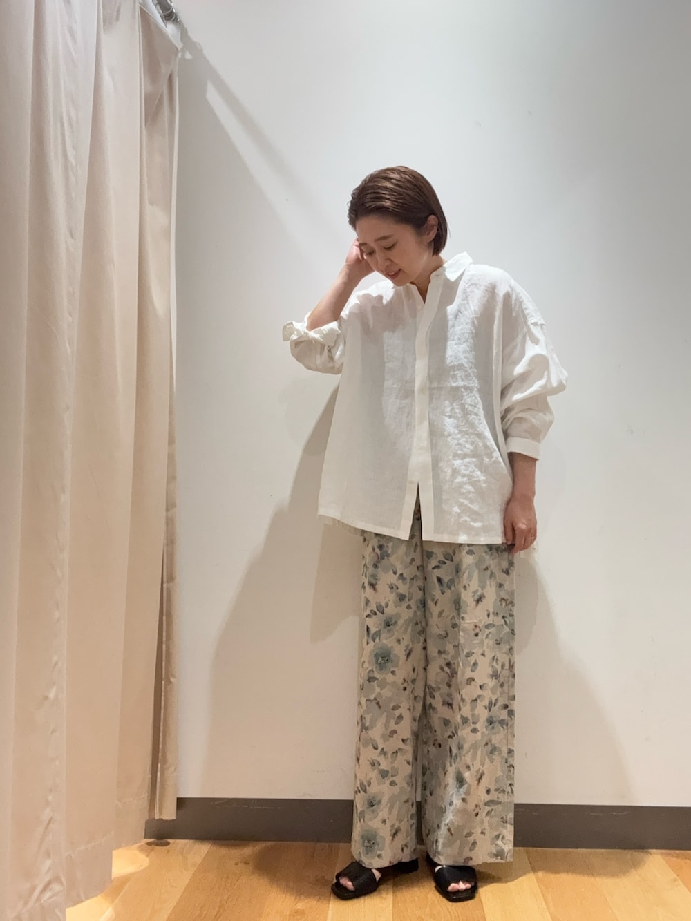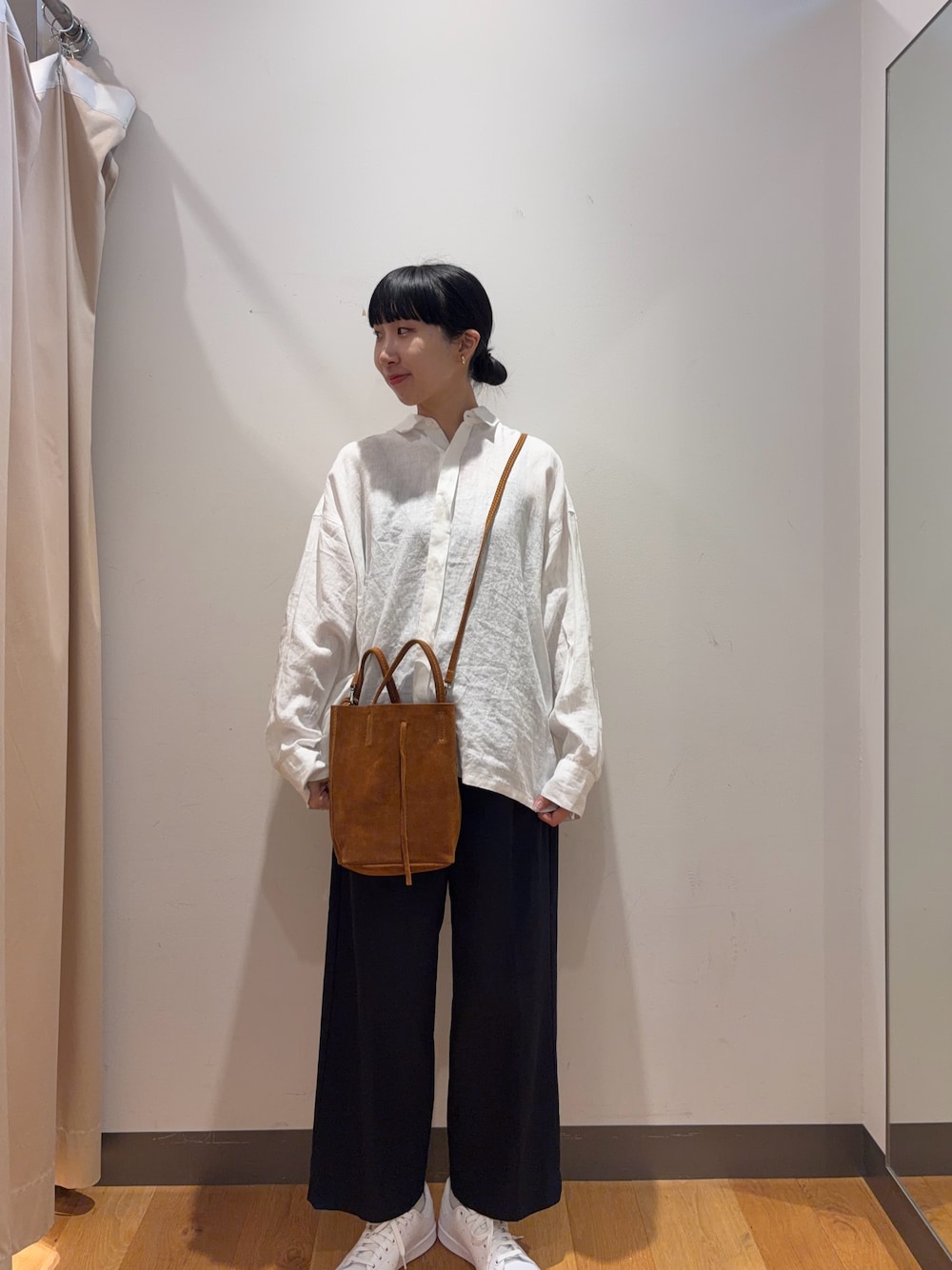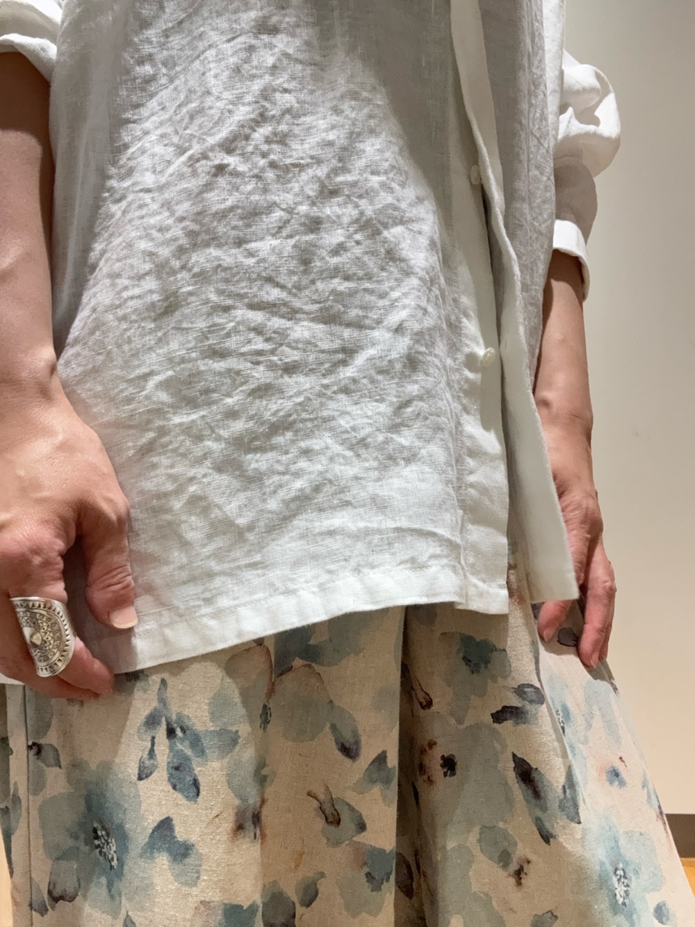 シンプルなリネンシャツと合わせて大人っぽい雰囲気にしました😊