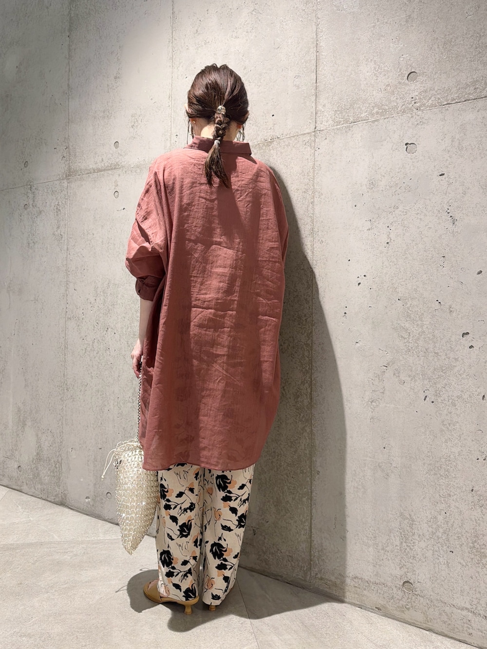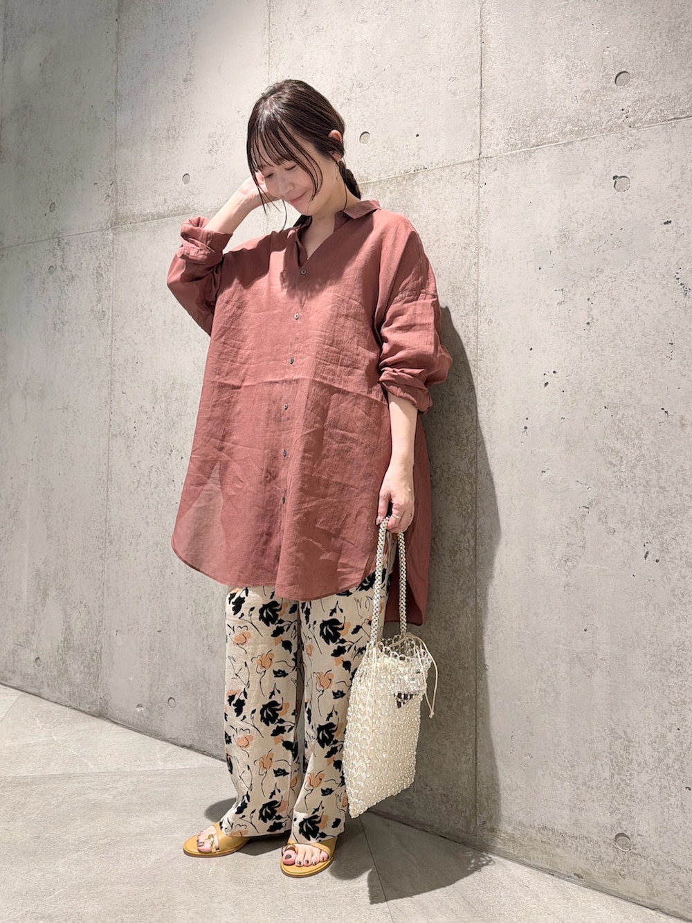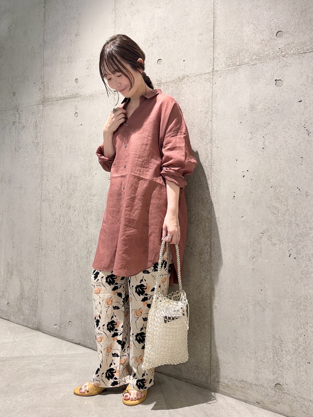 今回は、フラワープリントが大人な印象のイージーパンツと合わせた、カジュアルコーディネート。