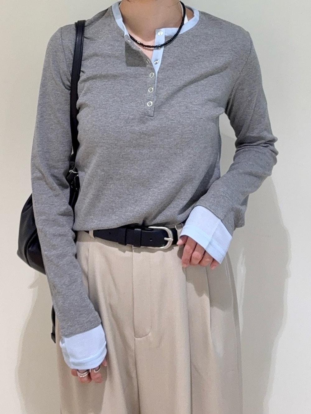 SENSE OF PLACE『洗濯可』ヘンリーネックレイヤードトップ- 着用カラー: