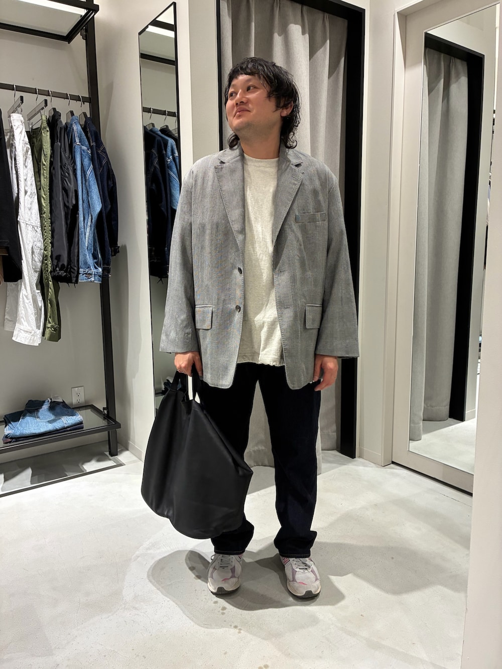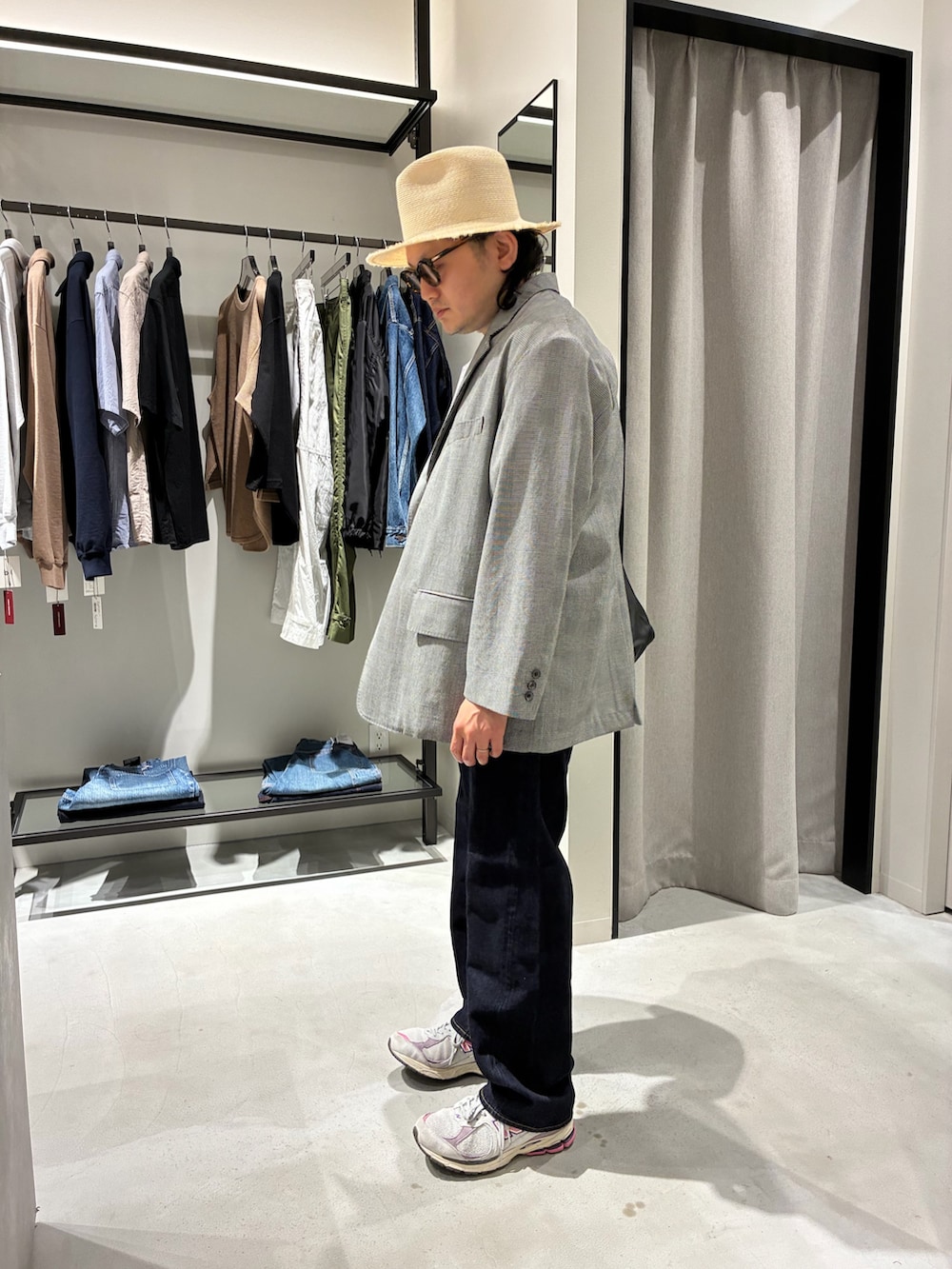 ジャケットのサイズ感を引き立てるために、デニムはストレートシルエットを選びました。
