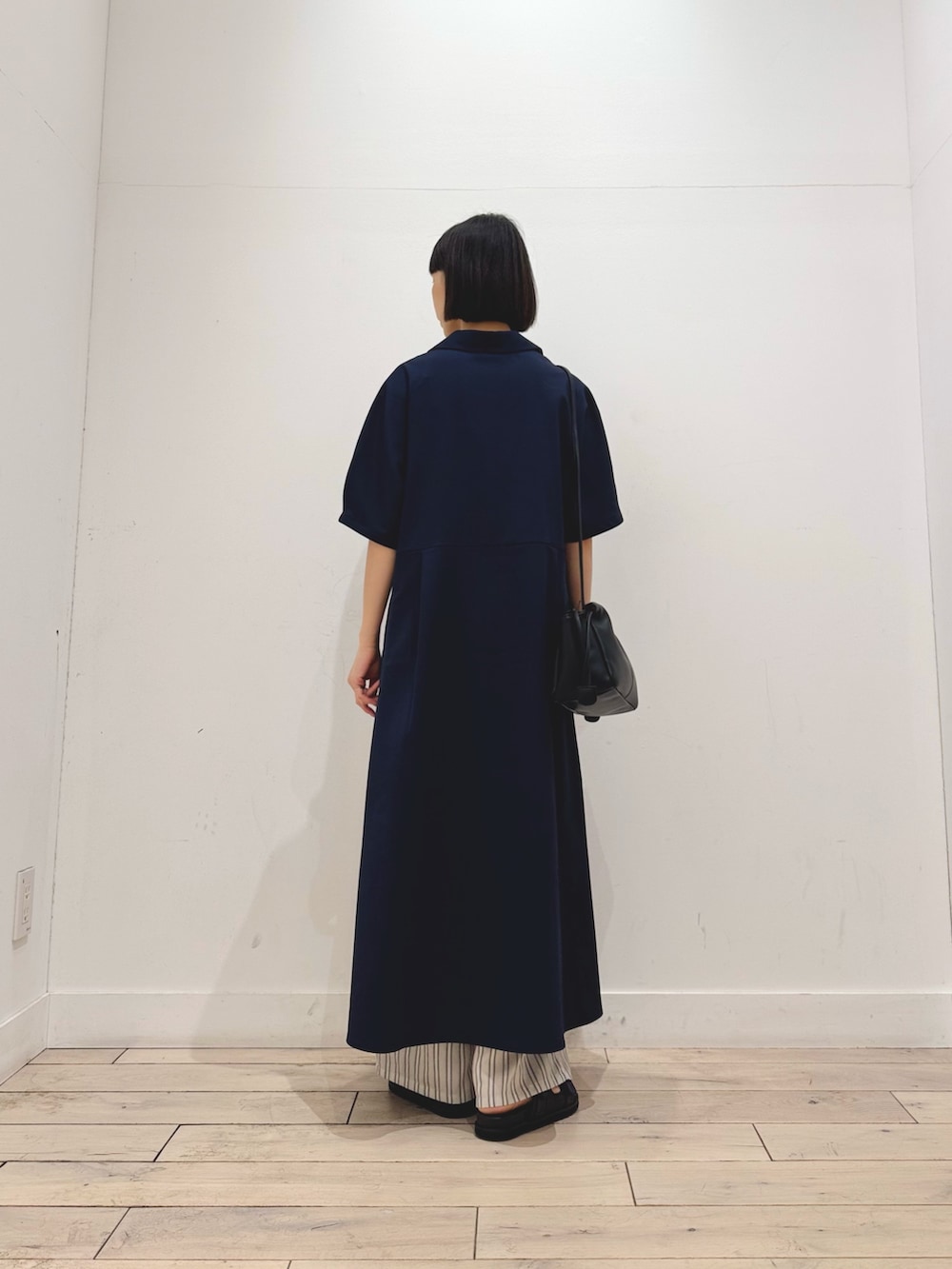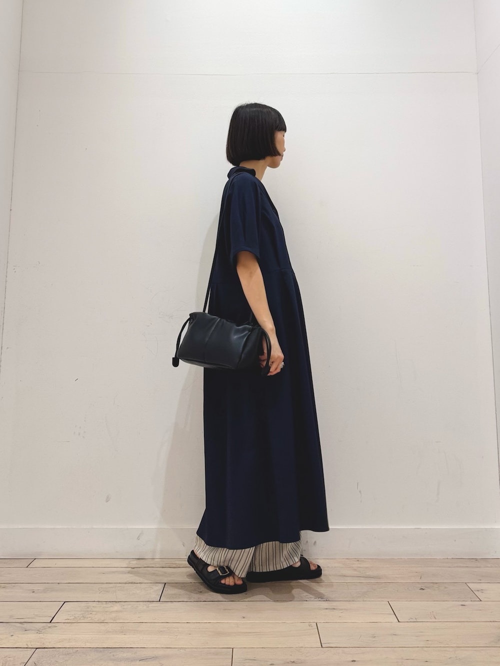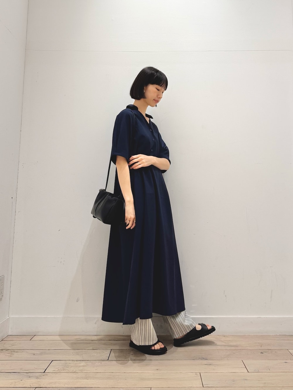 シャリ感がありサラッと夏にも着やすいです◎カジュアルにもきれいめにもなるワンピース、夏に1枚あると便利です◎