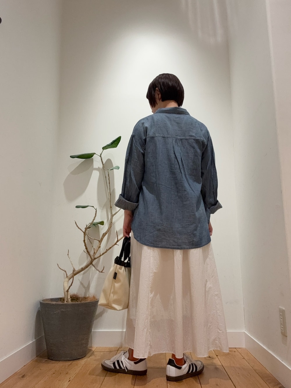 軽い着心地のシアーデニムシャツは