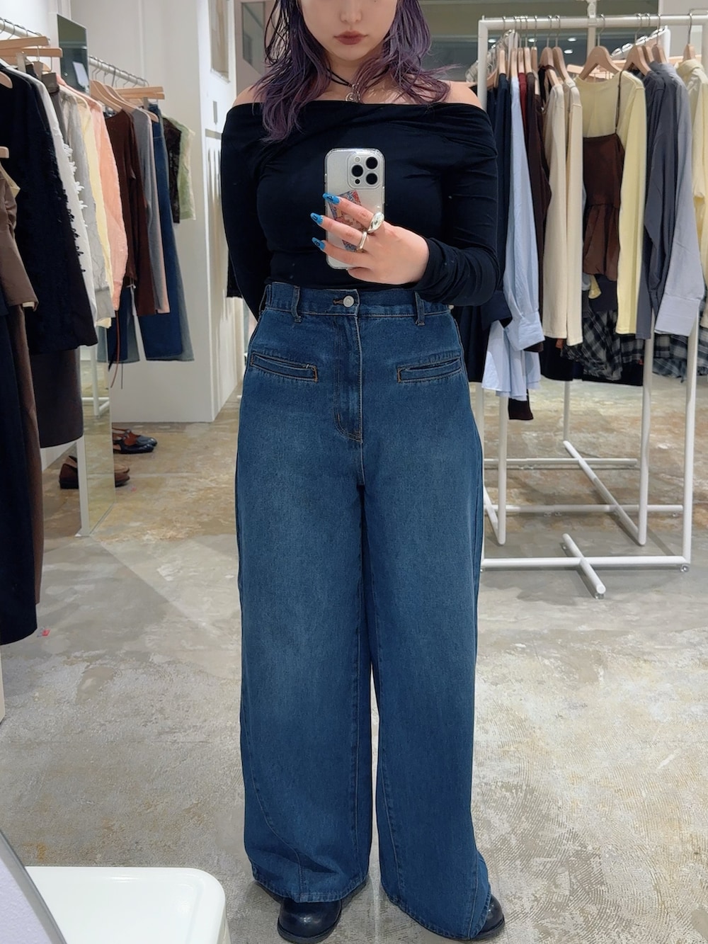 速攻リアルバイしたデニム🙂↕️💕シルエットが綺麗ですとんと落ちてくれるのがおすすめ!ウエスト周りは少し緩めの作りです✌️後ろにアジャストが付いていて調節ができるのでスッキリしたトップスをインする時はしっかりボタンを閉めてあげるのがおすすめです!