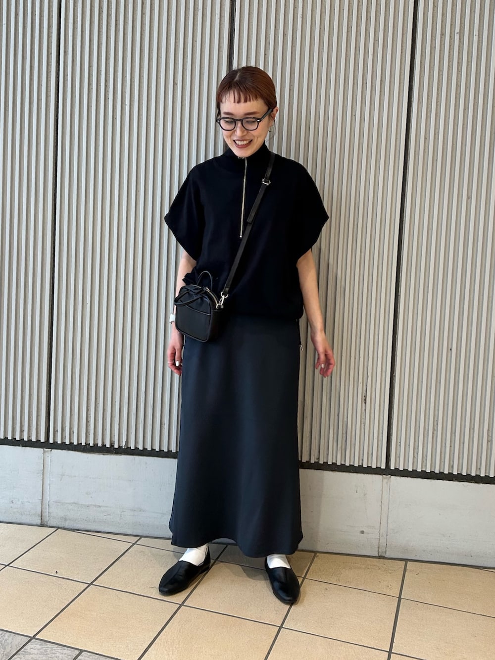 ハーフジップのトップスは、Tシャツのような素材感で着心地良いです。